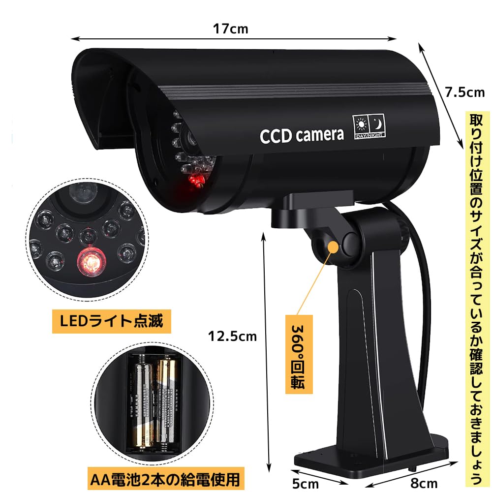 ダミー 防犯カメラ 監視カメラ 乾電池 常時点滅 電源不要 屋外 屋内 防犯対策