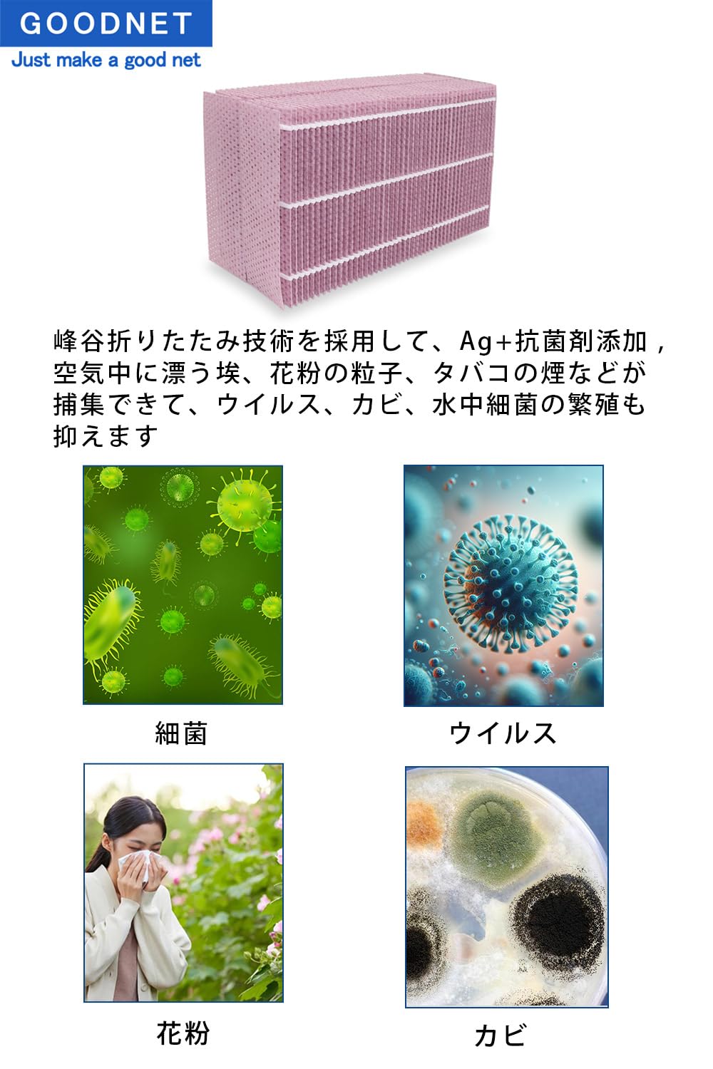 GOODNET FE-ZGV08 加湿フィルター 加湿空気清浄機 F-VXH50 F-VXG50 F-VC50XJ F-VXH70 F-VXJ50 F-VXM55 F-VE40XJ F-VXG70 F-VX50E8 F-VXG80 空気清浄機 互換フィルター 1枚入り