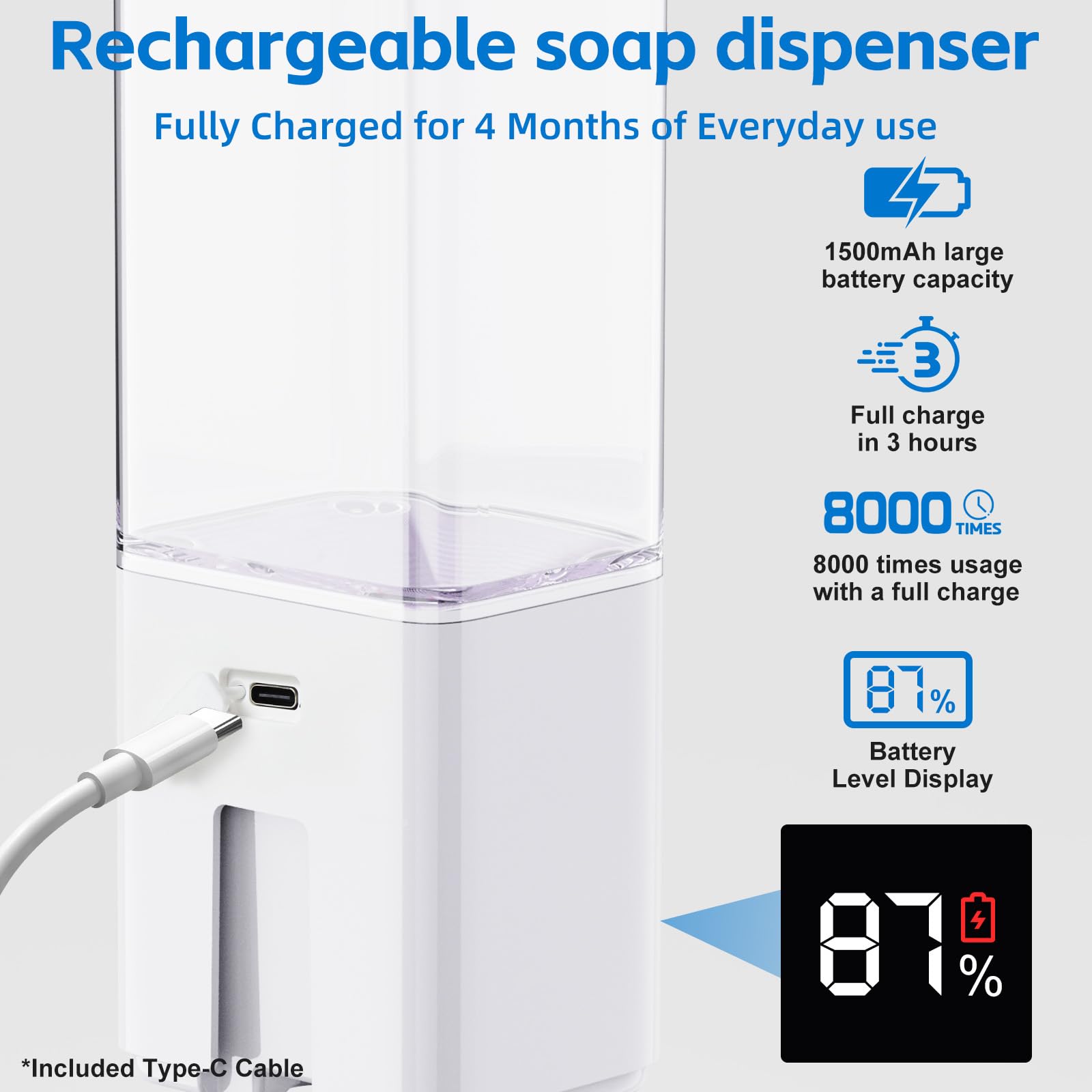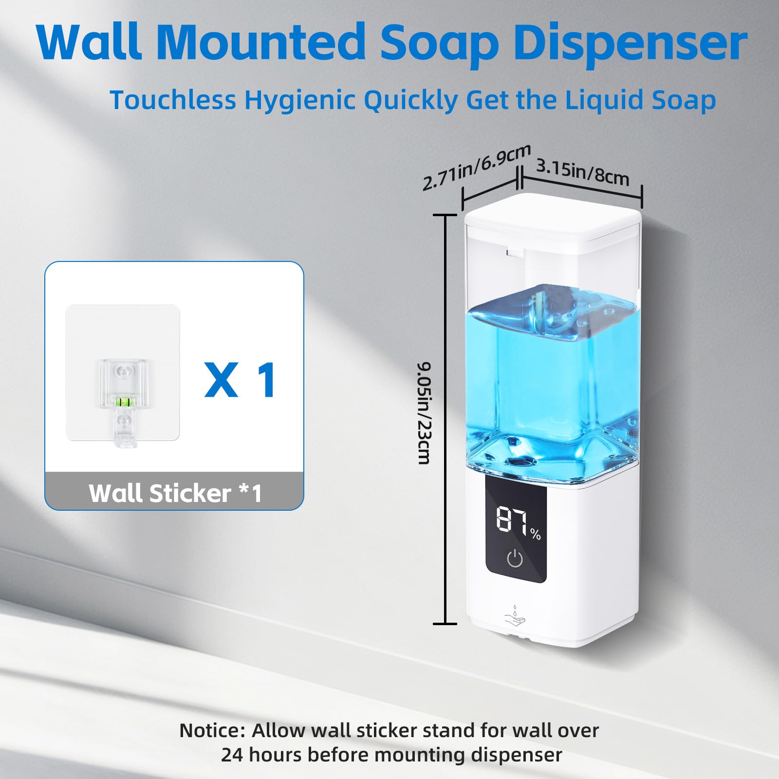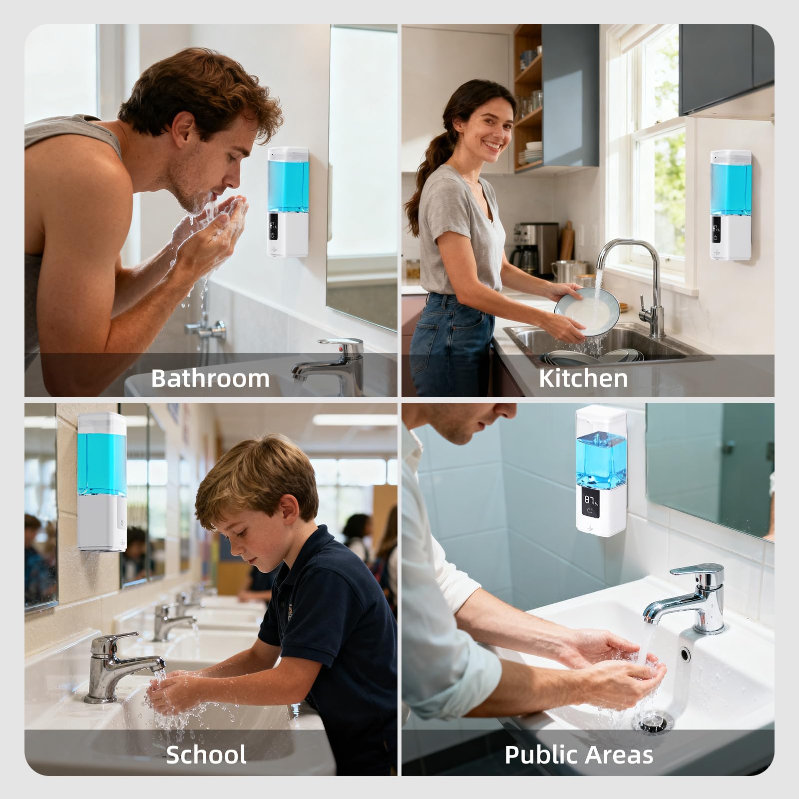 LAOPAO ソープディスペンサー 自動 液体 壁掛け シャンプーディスペンサー 5段階調整 デジタルディスプレー 充電式 IPX7防水 センサー式 シャンプーボトル 浮かせる 詰め替えボトル オートディスペンサー ハンドソープディスペンサー ボディーソープ 食器洗剤 540ml大容量 ホワイト [並行輸入品]