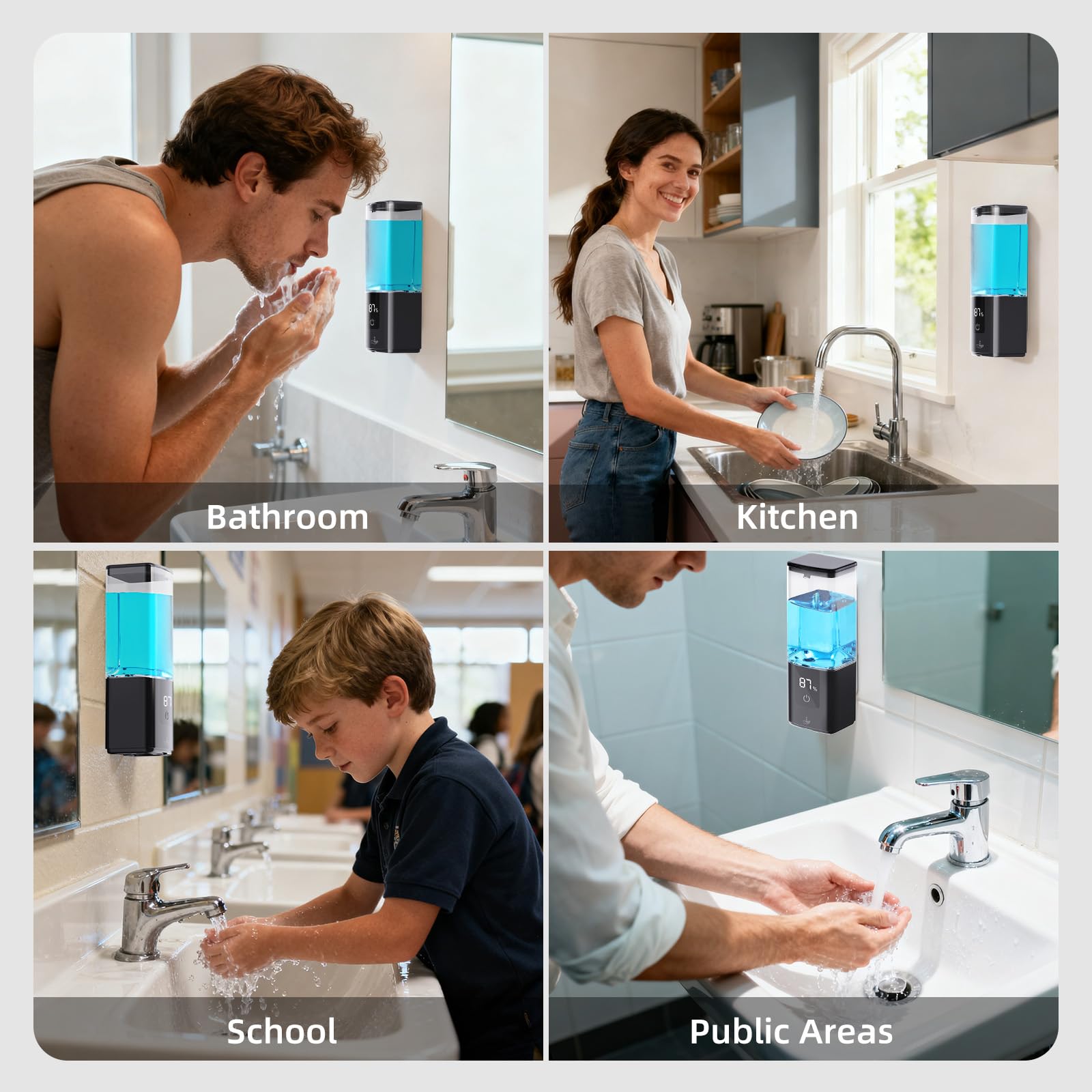 Gotofine 自動 ソープディスペンサー 泡 4段階調節可能 壁取り付け Type-C充電式 380ml 非接触式 オートディスペンサー 食器洗剤 ディスペンサー バスルーム キッチン ホテル レストラン 洗面所などに適用 (ブラック, 長方形)