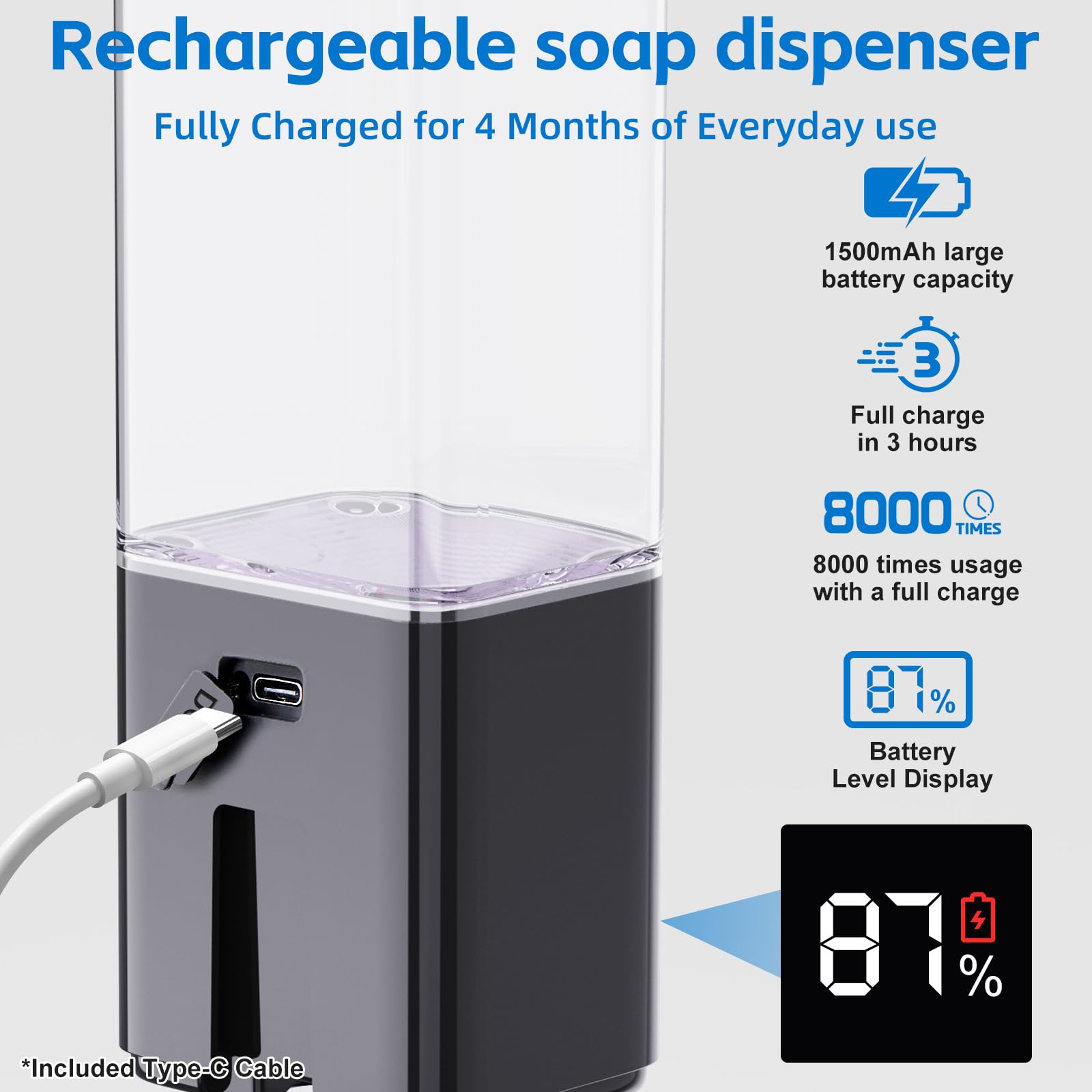 Varluckiner ソープディスペンサー ハンドソープ オートディスペンサー 自動 泡 380ml 吐出量4段階調节 壁掛け 充電式 キッチン 洗面所などに適用 日本語説明書付き
