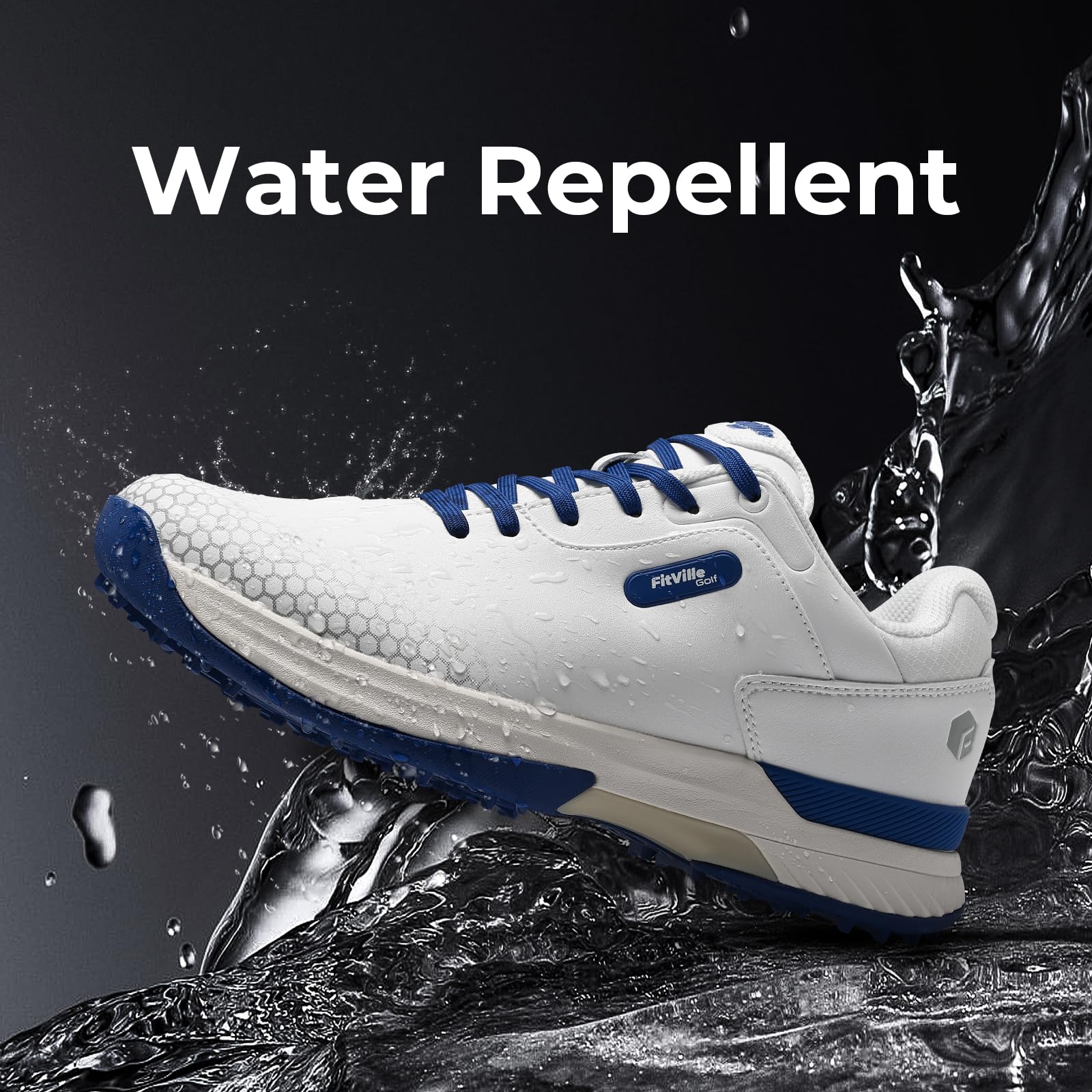 [FitVille] 幅広 ゴルフシューズ メンズ 2E 4E プロゴルフ靴 ソフトスパイク付き 軽量 防水 防滑[Size: 27.5 cm 2E]; [Color: Deep Blue]
