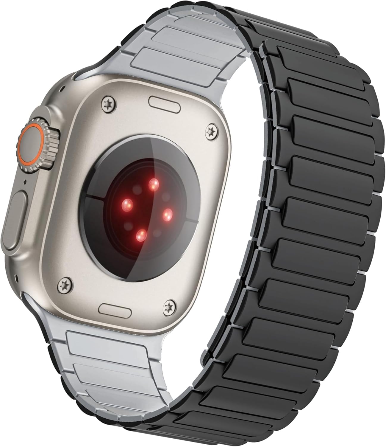 JA045-45002 濃い灰色 アップルウォッチバンド用のバンド 49mm 46mm 45mm 44mm 42mm コンパチブル アップルウォッチ 【シリカゲルストラップ·磁気吸引バックル·強力な磁】 長さ調節 通気 ソフトで汗に強く、スタイリッシュ 男女兼用 アップルウォッチ Series Ultra/Ultra 2/10/9/SE/8/7/6/5/4/3/2/1に対応 [並行輸入品]