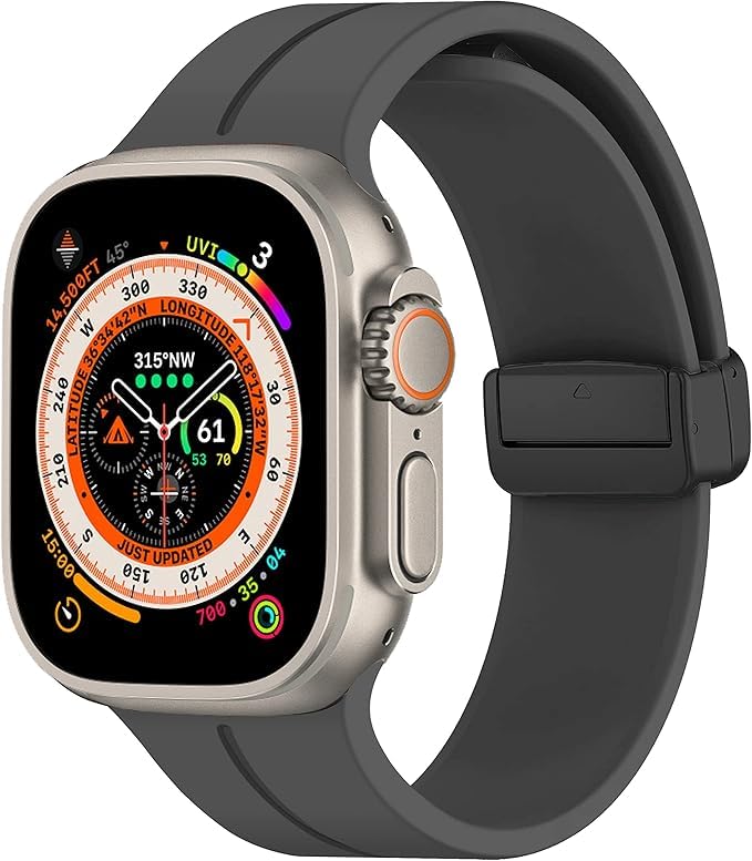 JA045-45002 濃い灰色 アップルウォッチバンド用のバンド 49mm 46mm 45mm 44mm 42mm コンパチブル アップルウォッチ 【シリカゲルストラップ·磁気吸引バックル·強力な磁】 長さ調節 通気 ソフトで汗に強く、スタイリッシュ 男女兼用 アップルウォッチ Series Ultra/Ultra 2/10/9/SE/8/7/6/5/4/3/2/1に対応 [並行輸入品]