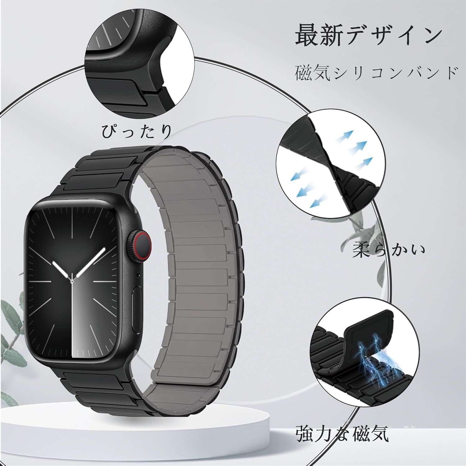 JA045-45001 黒 アップルウォッチバンド用のバンド 49mm 46mm 45mm 44mm 42mm コンパチブル アップルウォッチ 【シリカゲルストラップ·磁気吸引バックル·強力な磁】 長さ調節 通気 ソフトで汗に強く、スタイリッシュ 男女兼用 アップルウォッチ Series Ultra/Ultra 2/10/9/SE/8/7/6/5/4/3/2/1に対応 [並行輸入品]