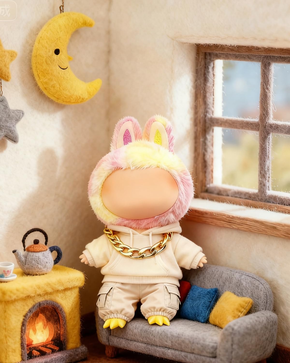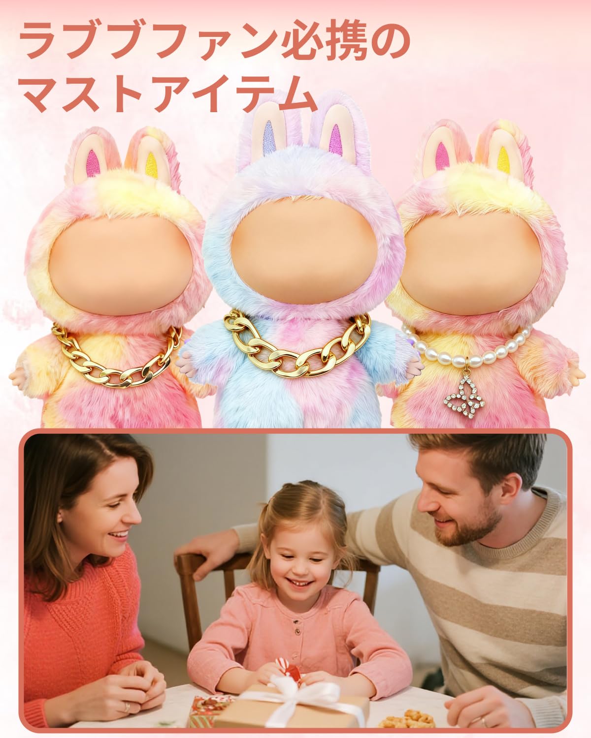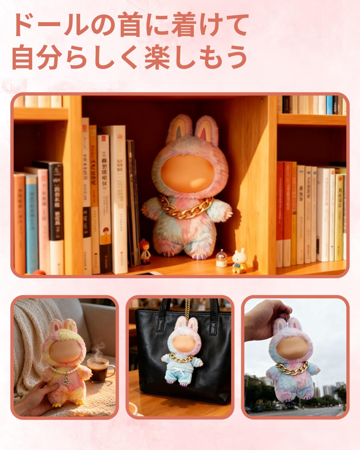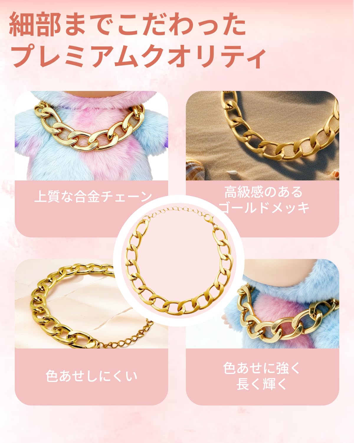 17cm人形ドール用 3本セット ゴールドネックレス ハート・スター・クラシックチェーンデザイン ラブブ用 ネックレスチャームアクセサリー