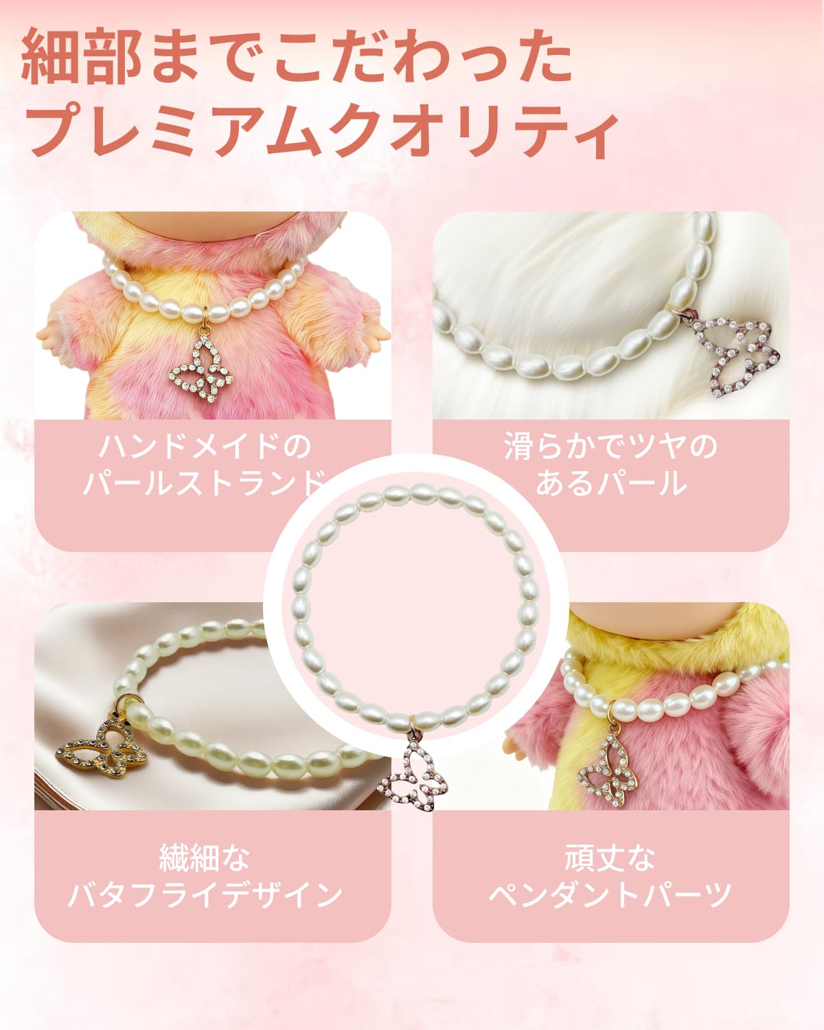 17cm人形ドール用 パールネックレス 中空バタフライペンダント付き ラブブ用 ネックレスチャームアクセサリー