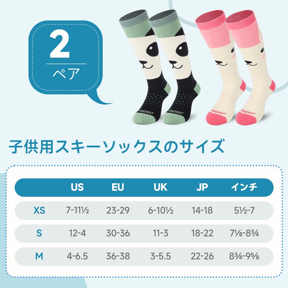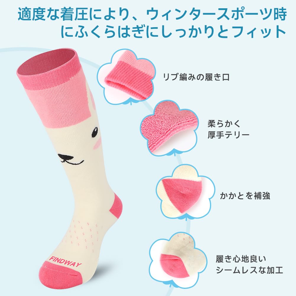 [Findway] 【2足組】 スキーソックス キッズ スキー靴下 子供 厚手 吸汗・速乾 抗菌・防臭 防寒保温 スノボー 靴下 子供 スキー用 アウトドア スポーツ 冬用 快適 耐久性 伸縮性 通気性 3歳から大人まで対応