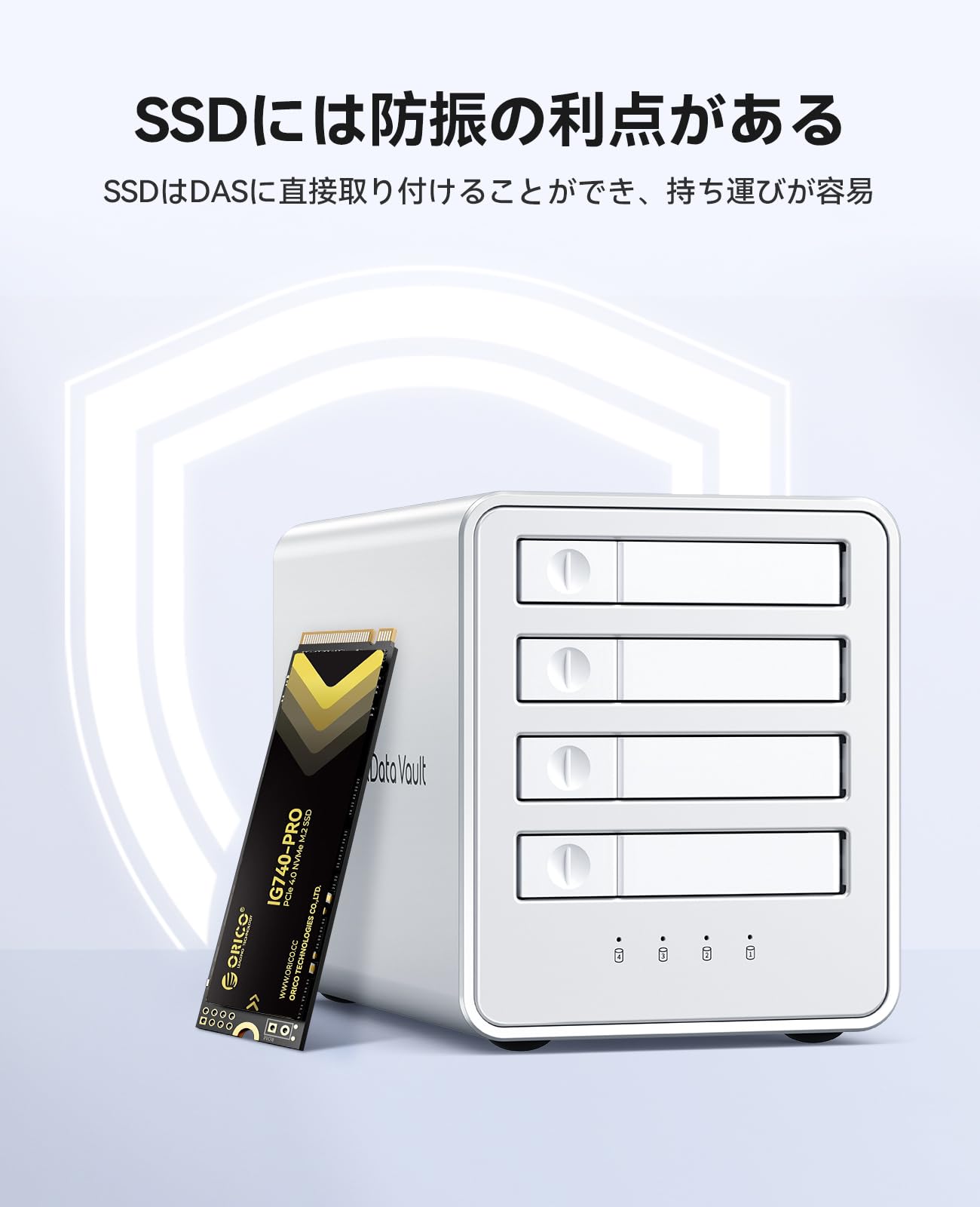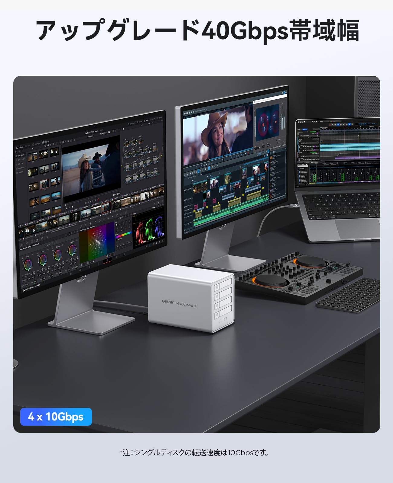 ORICO 40Gbps オールフラッシュ SSDケース 4*10Gbps M.2 SSD 外付けケース 8TB*4 NVMe/PCIE対応 2230/2224/2260/2280 静音 防振 アルミ合金制 冷却ファン搭載 8848U4