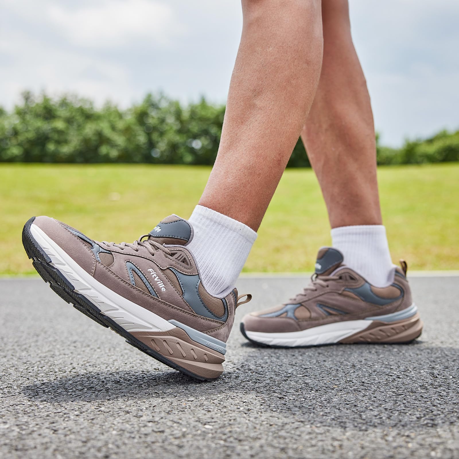 [FitVille] 幅広 メンズ スニーカー 2E 4E ウォーキングシューズ ランニング トレーニング 体育館 運動 立ち仕事 靴 厚底 疲れない スエード[size:25.5 cm 4E];[color:ブラウン]