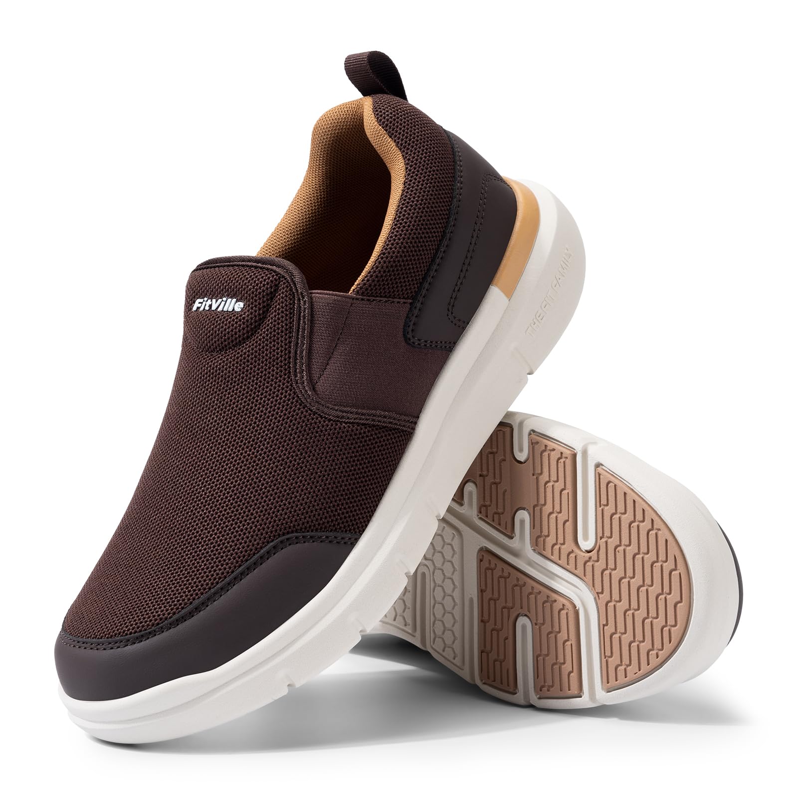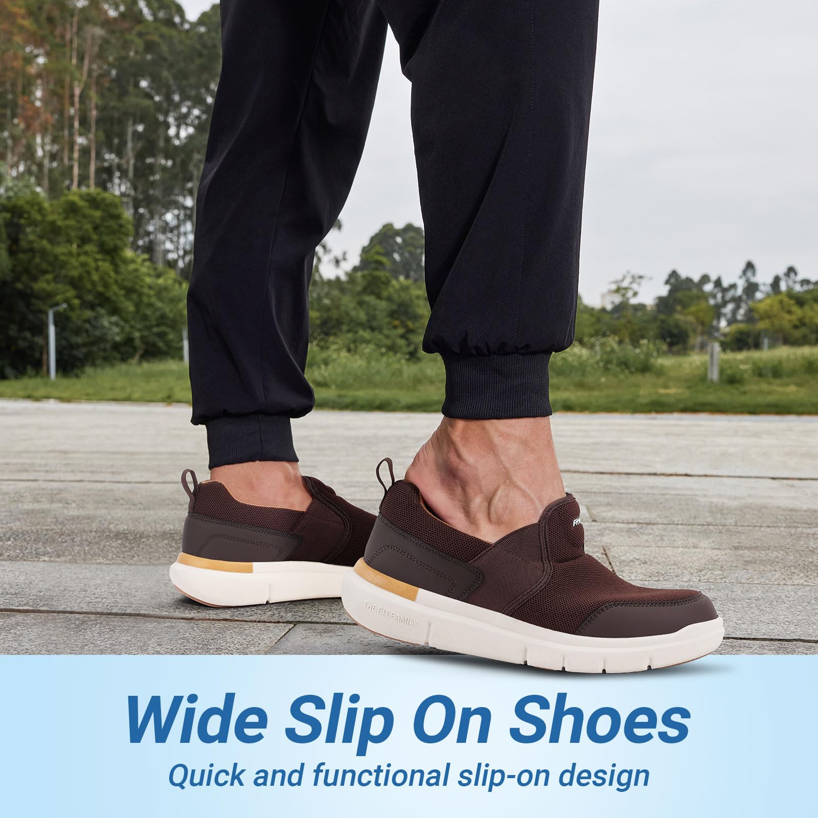 [FitVille] スニーカー スリッポン メンズ 幅広 2E 4E ウォーキングシューズ 通気 軽量 厚底 ランニングシューズ 運動靴 スパットシューズ メッシュ 脱ぎ履きしやすい 手を使わずに履ける[size:27.5 cm 4E];[color:コーヒー]