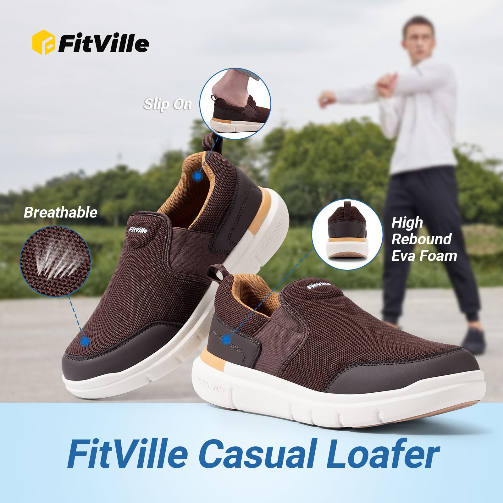 [FitVille] スニーカー スリッポン メンズ 幅広 2E 4E ウォーキングシューズ 通気 軽量 厚底 ランニングシューズ 運動靴 スパットシューズ メッシュ 脱ぎ履きしやすい 手を使わずに履ける