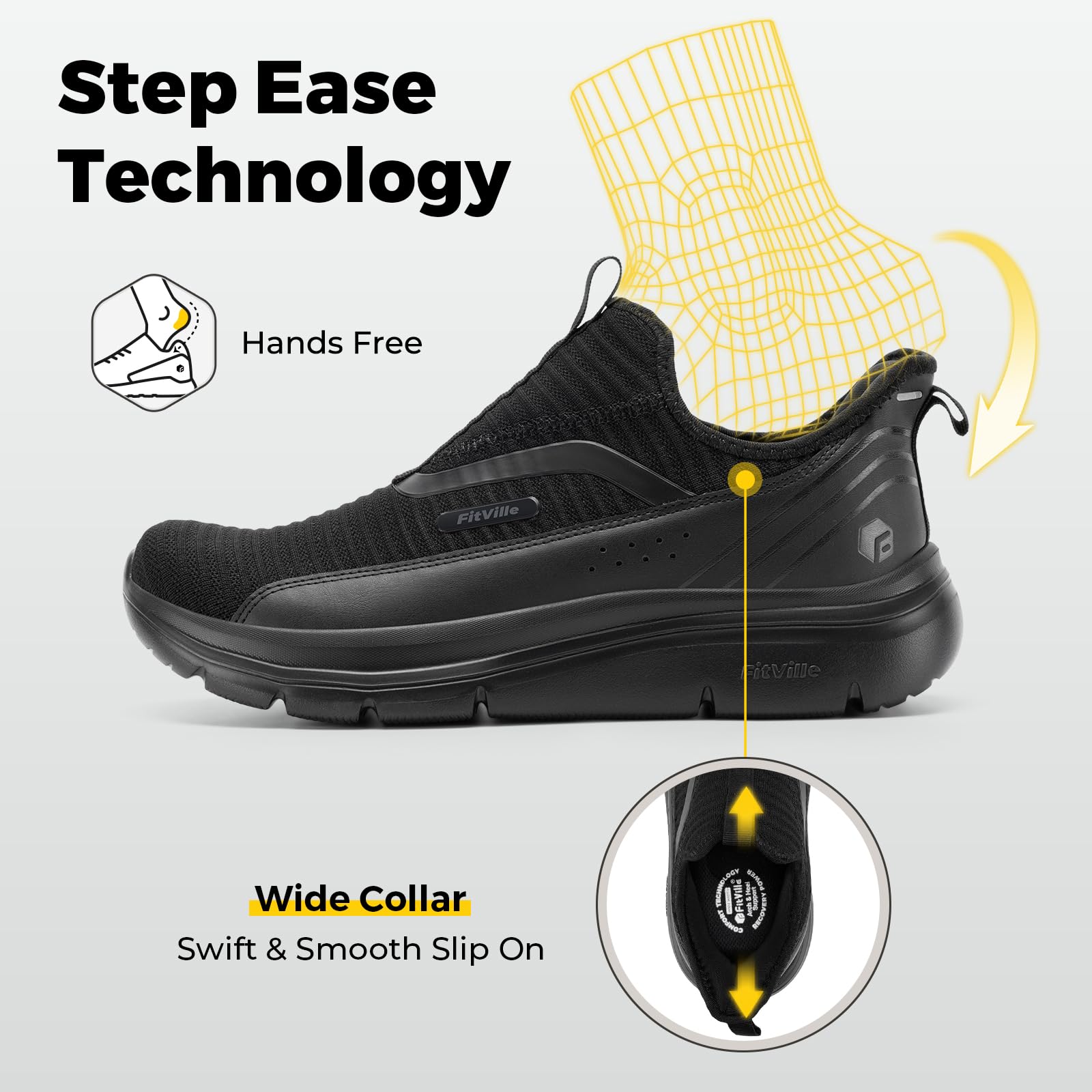 [FitVille] スニーカー スリッポン メンズ 幅広 2E 4E 厚底 ランニングシューズ スポーツシューズ ウォーキングシューズ 運動靴 通気 軽量 滑り止 クッション性 日常着用 立ち仕事 脱ぎ履きしやすい [size:27.0 cm 4E];[color:ブラック]