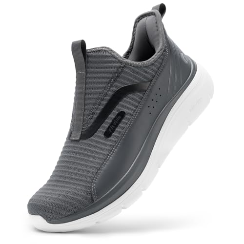 [FitVille] スニーカー スリッポン メンズ 幅広 2E 4E 厚底 ランニングシューズ スポーツシューズ ウォーキングシューズ 運動靴 通気 軽量 滑り止 クッション性 日常着用 立ち仕事 脱ぎ履きしやすい [size:26.0 cm 4E];[color:ダークグレー]