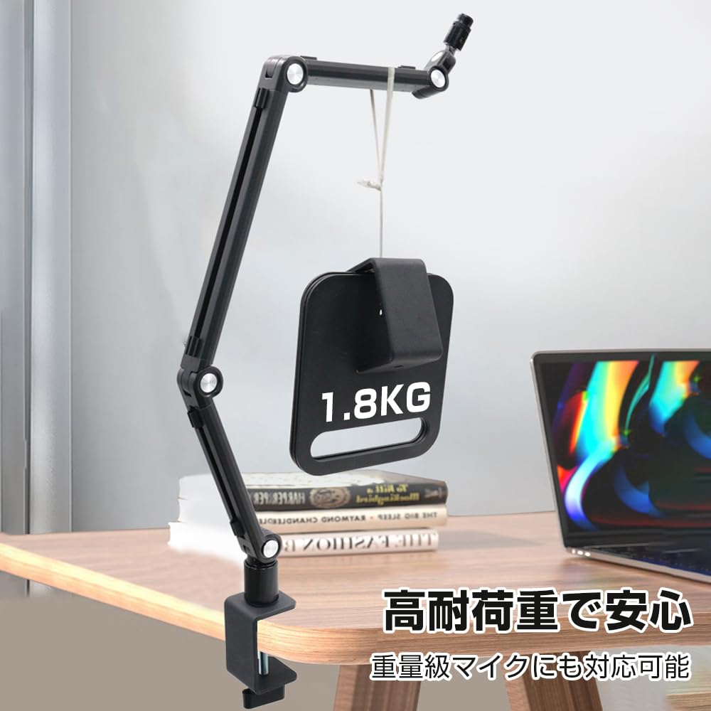 JetWave マイクブームアーム マイクスタンド アルミ製 耐荷重1.8KG 角度調節 八つ可動関節 折りたたみ式 省スペース設計 ケーブルガイド マイククリップ付属 コンデンサーマイク用 配信/収録/生放送実況対応