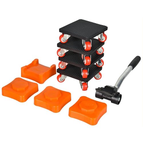 Aquafix 家具移動キャリー 五点セット 金属 プラスチック素材 リフター 台車 家具移動小型車 家具移動ヘルパー ひとりでも運べる 360度回転キャスター フローリング保護設計 荷物運び/引っ越/家具移動用(赤色)