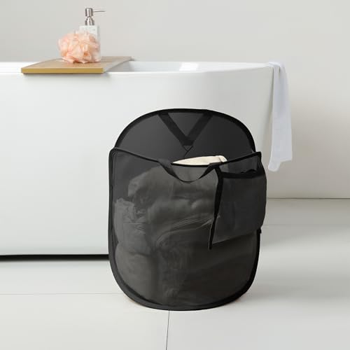 TECHMILLY ランドリーバスケット 壁掛け 洗濯かご 大容量 自立 ランドリーバッグ メッシュ 省スペース 収納 洗濯物 袋 かご 持ち運び可能 軽量 旅行 ゴミ箱 幅さ40CM長さ20CM高さ53CM (ブラック、2PCS)
