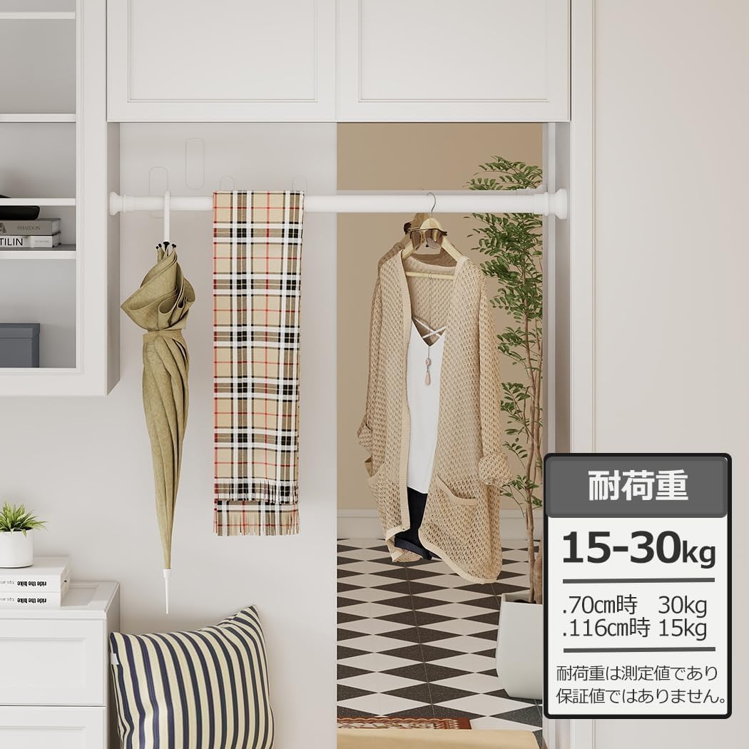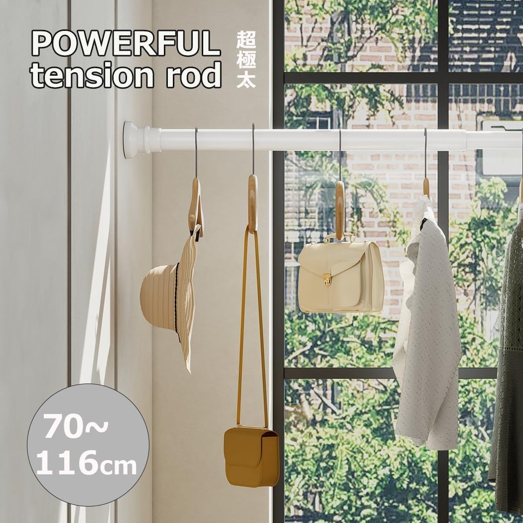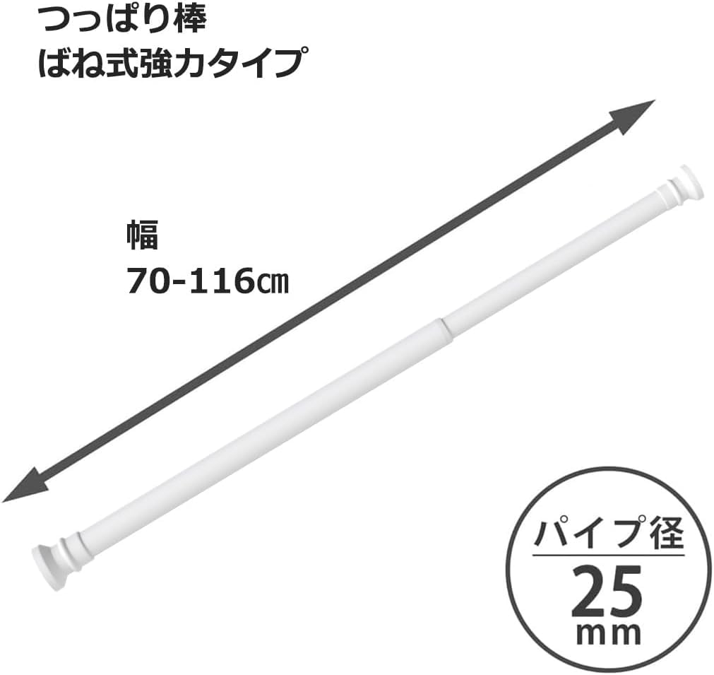 つっぱり棒 突ぱり棒 強力ポール パーテーション 間仕切り カーテンポール (ホワイト, 取付寸法 70‐116㎝)
