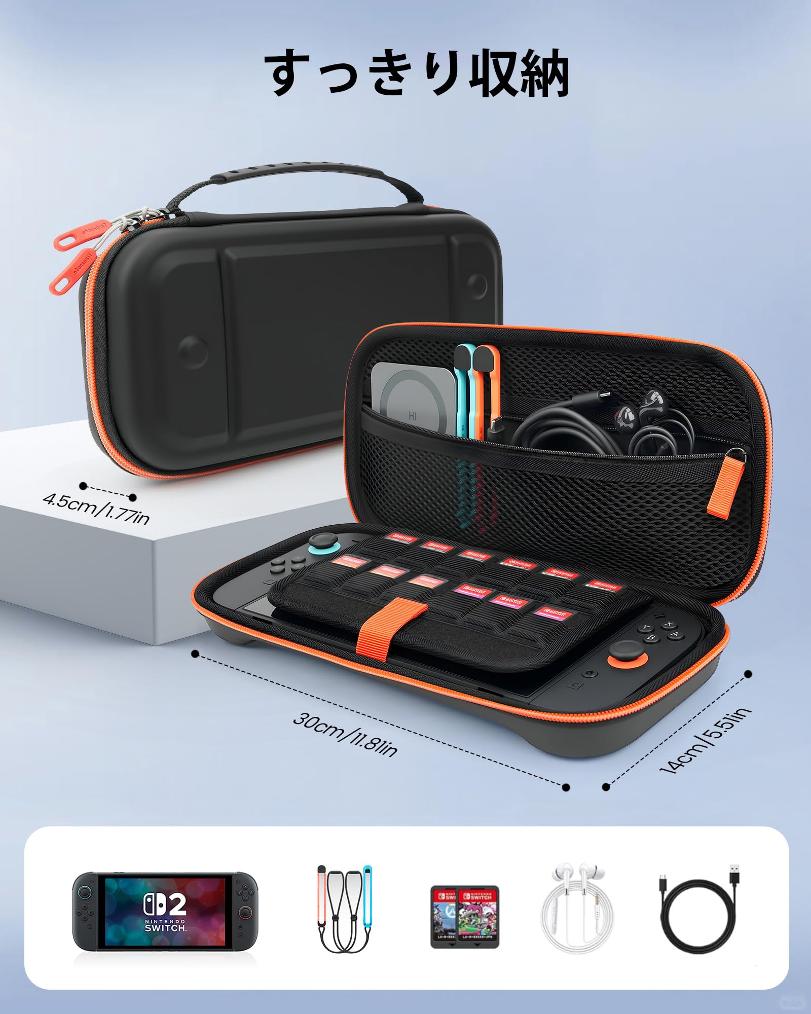 TRANSNOVO 対応Nintendo Switch 2 ケース Switch2本体対応 ニンテンドースイッチ対応 収納バッグ 大容量24ゲームカードスロット付き メッシュポケット内蔵(Joy Cons/充電ケーブル/ゲームカードケース収納可)防塵・防水・耐衝撃 旅行用 持ち運び便利 スイッチ2対応 キャリングケース