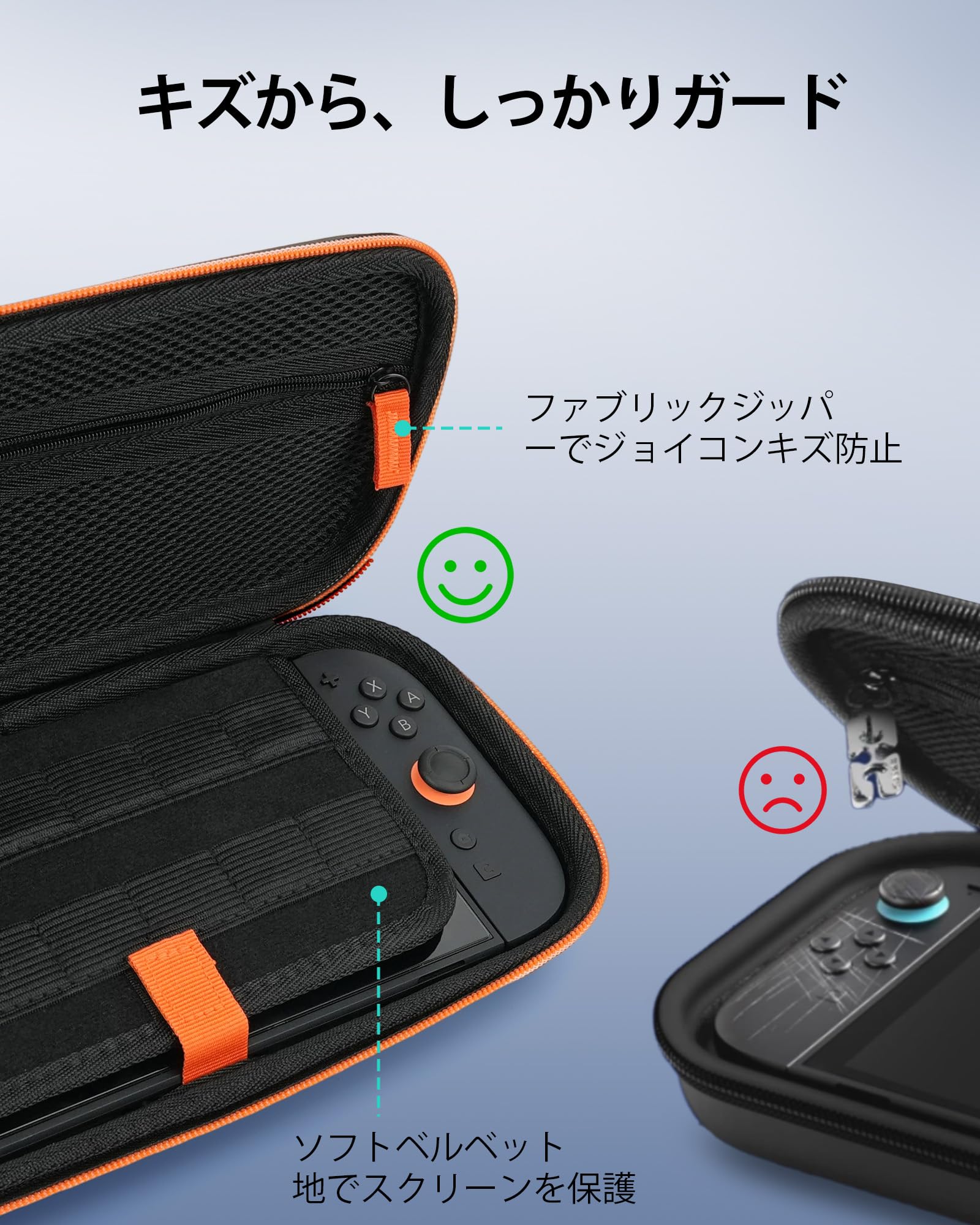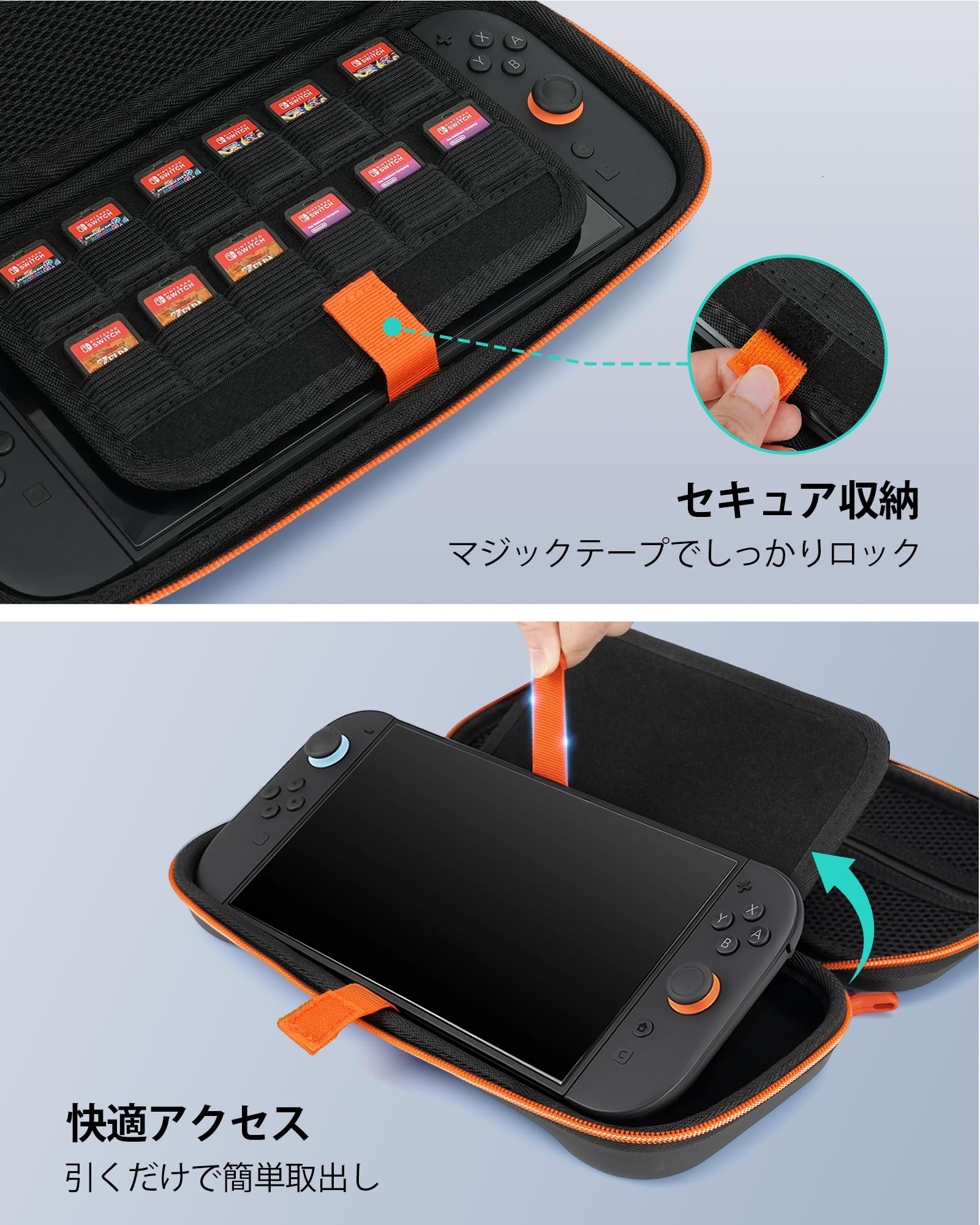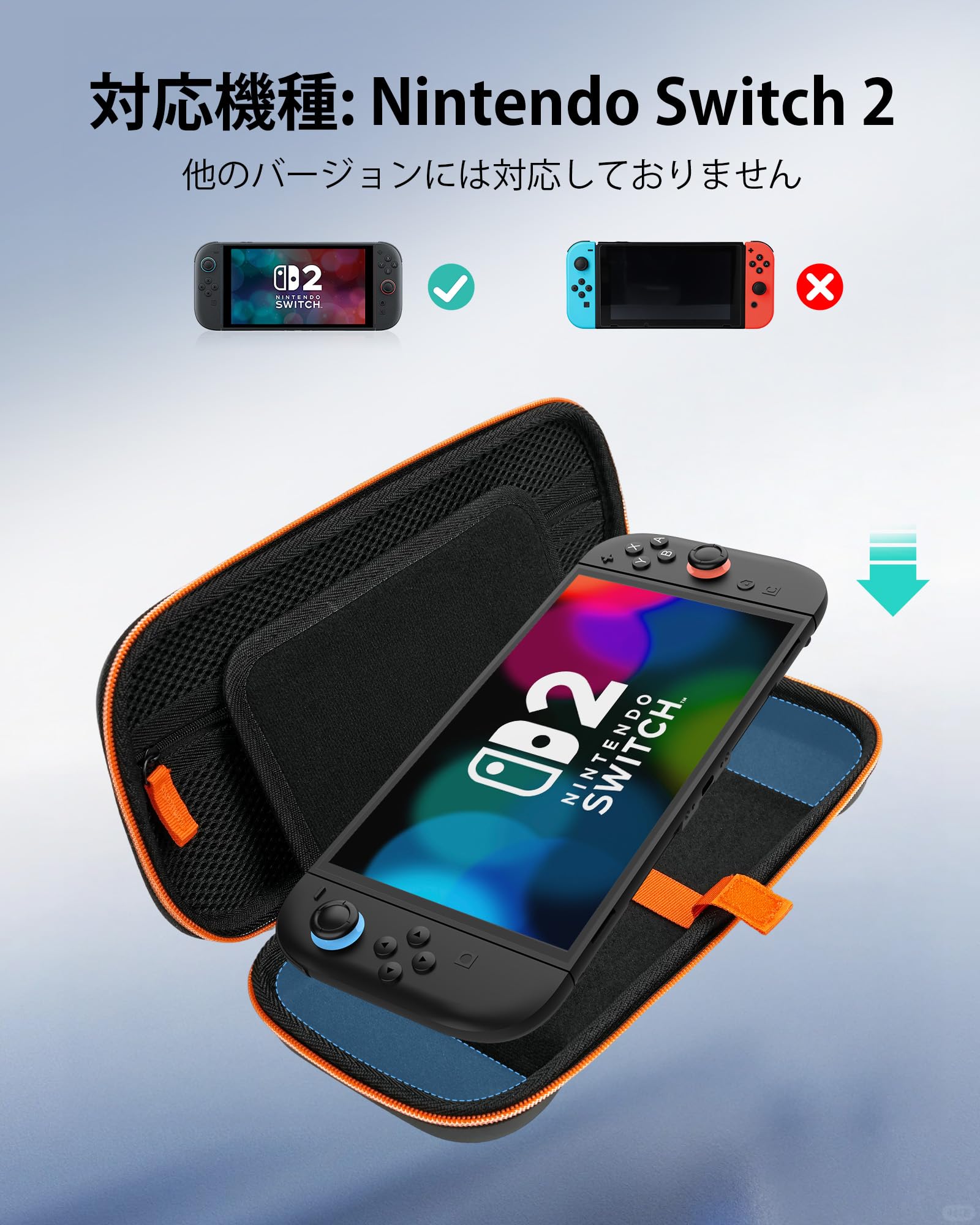 ProCase Switch2 ケース スリム 2025年モデル専用 ハード 持ち運び便利 キャリングケース 耐衝撃 防塵 ポーチ 周辺機器 -ブラック·オレンジ