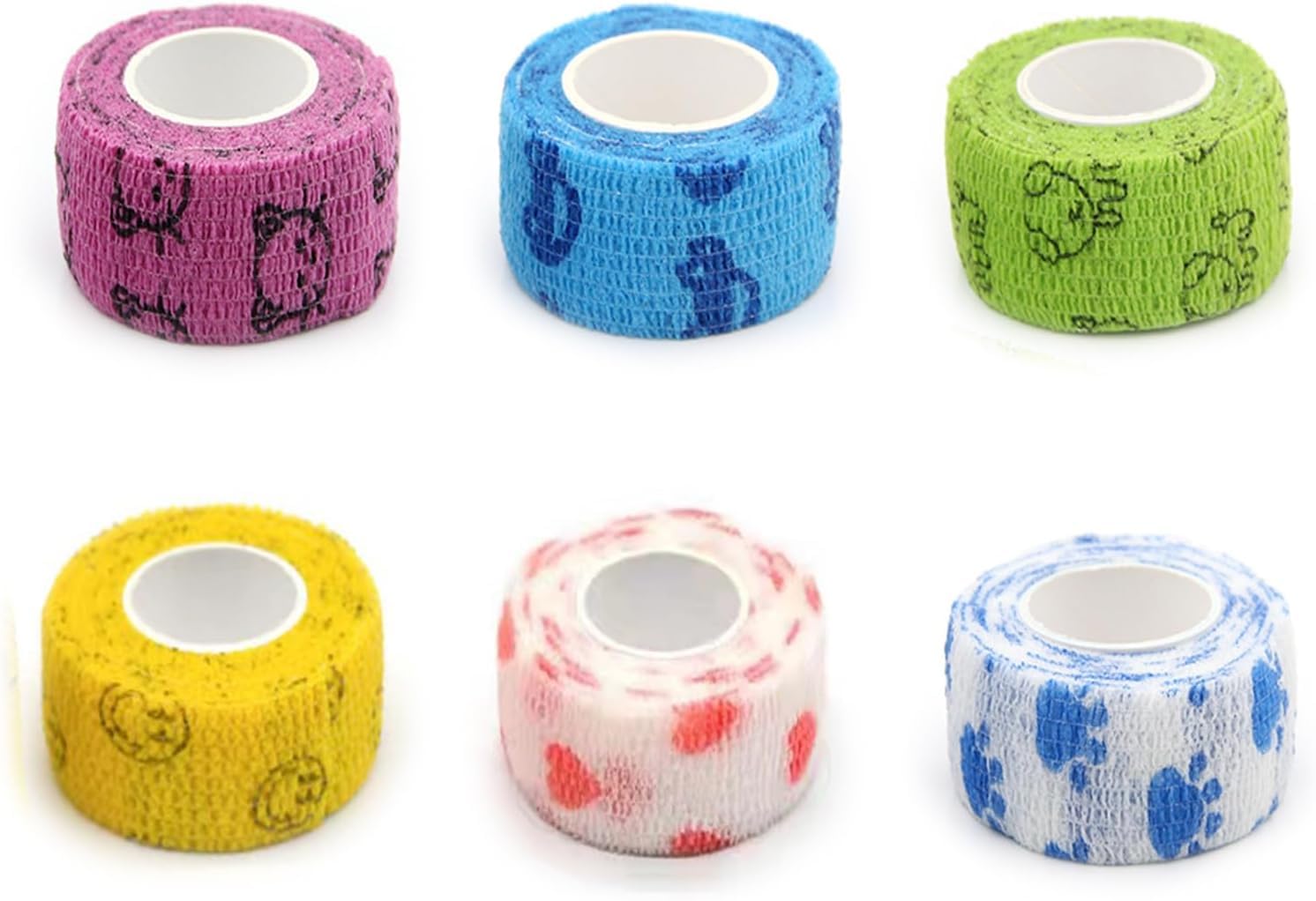ペットフレックス テーピング 粘着包帯 自着性伸縮包帯 テーピング バンテージ ペット 犬用 猫 動物用包帯 通気性 多機能 6巻入 2.5cm*4.5m (マルチカラー)