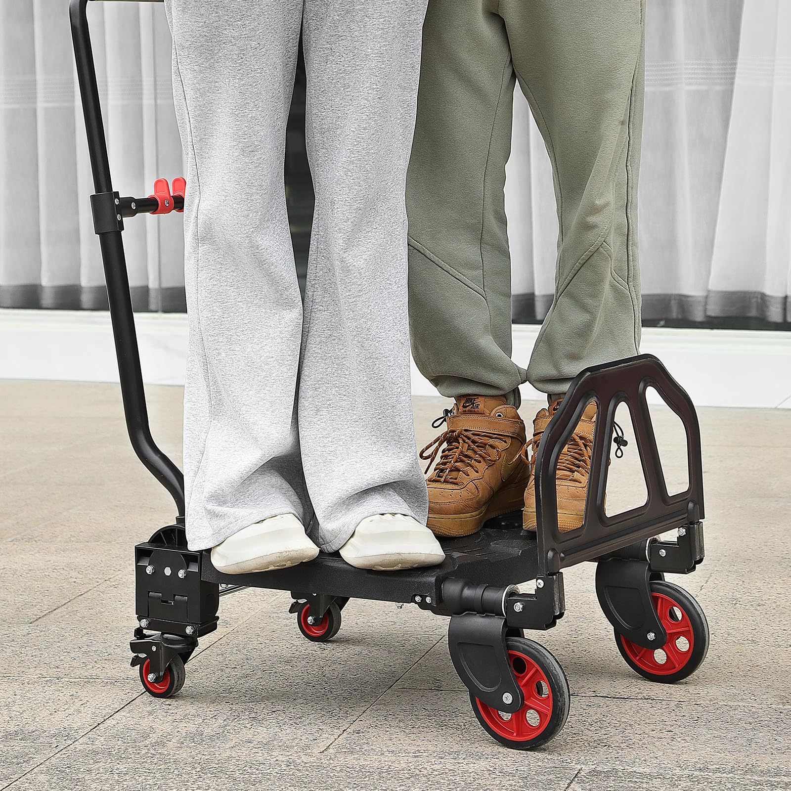 Hrelec 折りたたみ台車 手押し台車 静音台車 軽量 コンパクト ハンドル三段調節 自在輪付き(後輪) 耐荷重150KG スッキリ収納 滑り止め 買い物 引っ越し TPRホイール 持ち運び便利 家庭用 業務用