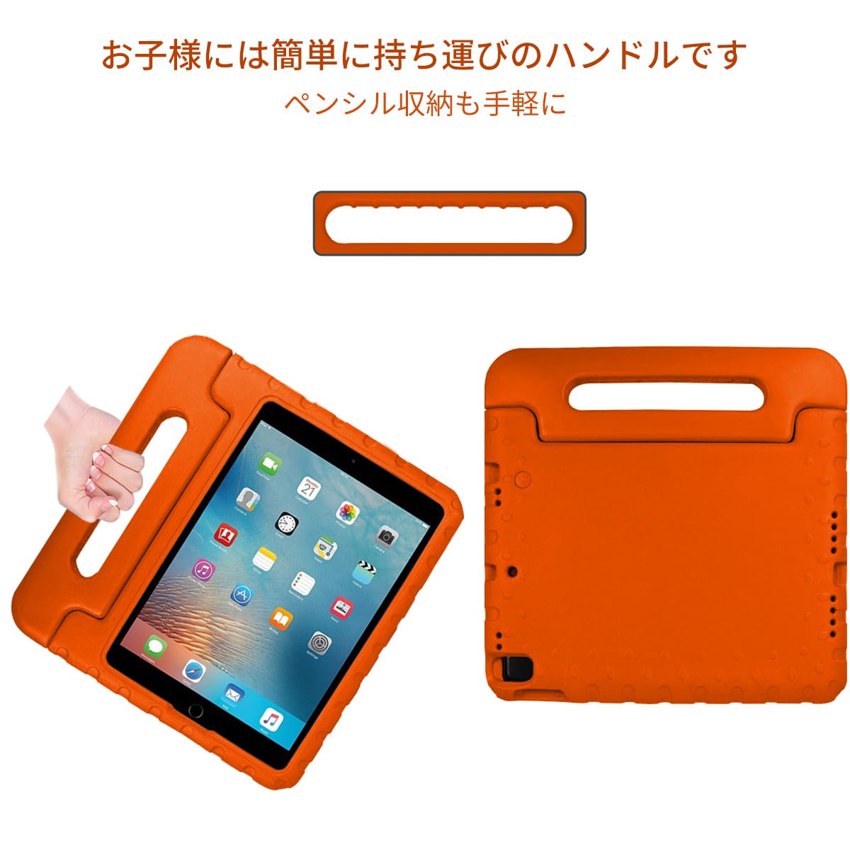 iPad 9世代 2021 8世代 2020 7世代 2019 10.2 インチ ケース iPad Air3 10.5インチ キッズケース ハンドル付き 超軽量 耐衝撃 スタンド機能 EVA キッズ 子ども用 カバー(オレンジ)