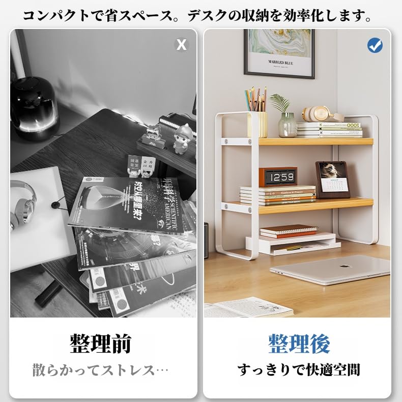 Aikenn 卓上ラック 卓上本棚 デスク上置き棚 卓上収納 机上ラック デスク上収納ラック 机上収納 オフィス デスク収納 机上本棚 小物収納 おしゃれ ブックスタンド 本立て 大容量 整理整頓 スッキリ (ホワイト)