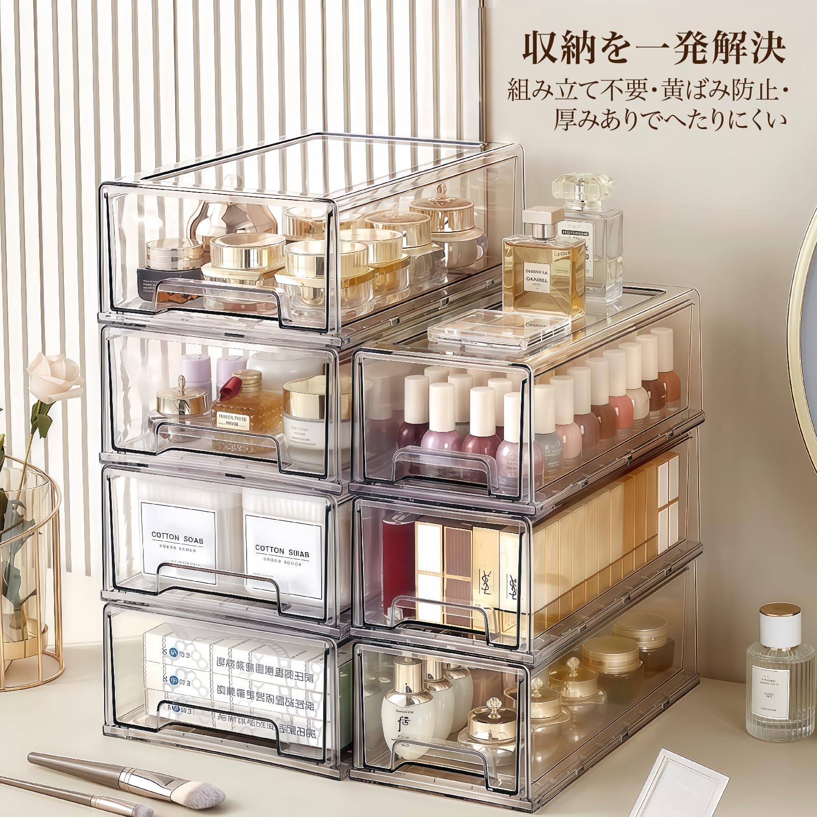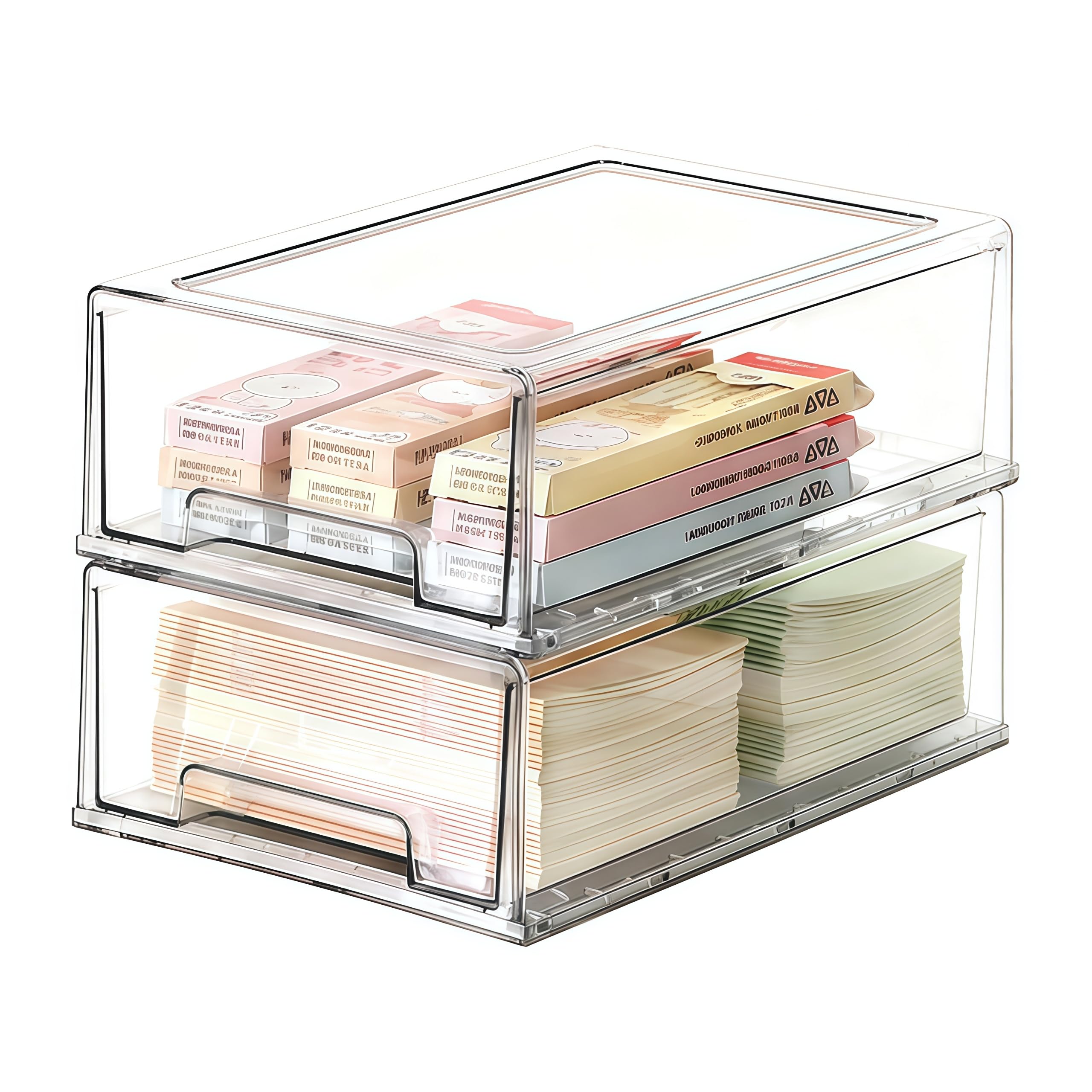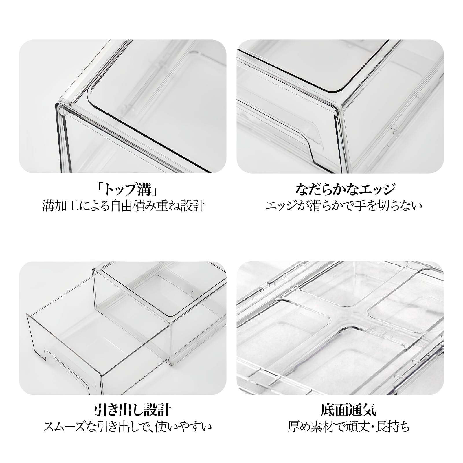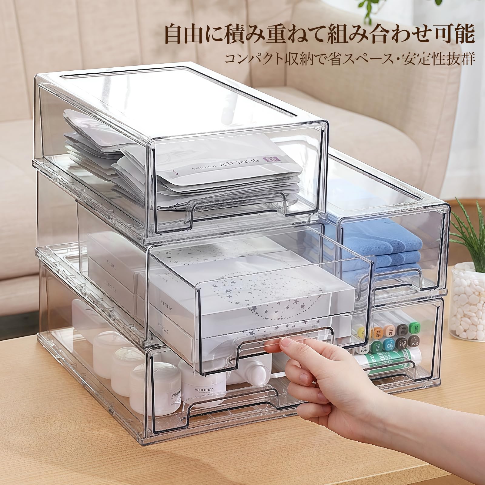 WoRefCra 2個セット 透明 卓上収納ボックス 引き出し付き 収納ケース 重ね置き 小物収納 文房具 整理ケース 机上収納 多機能 冷蔵庫収納 オーガナイザー 事務用品 家庭用 キッチン 浴室 クローゼット(21*32*11cm)