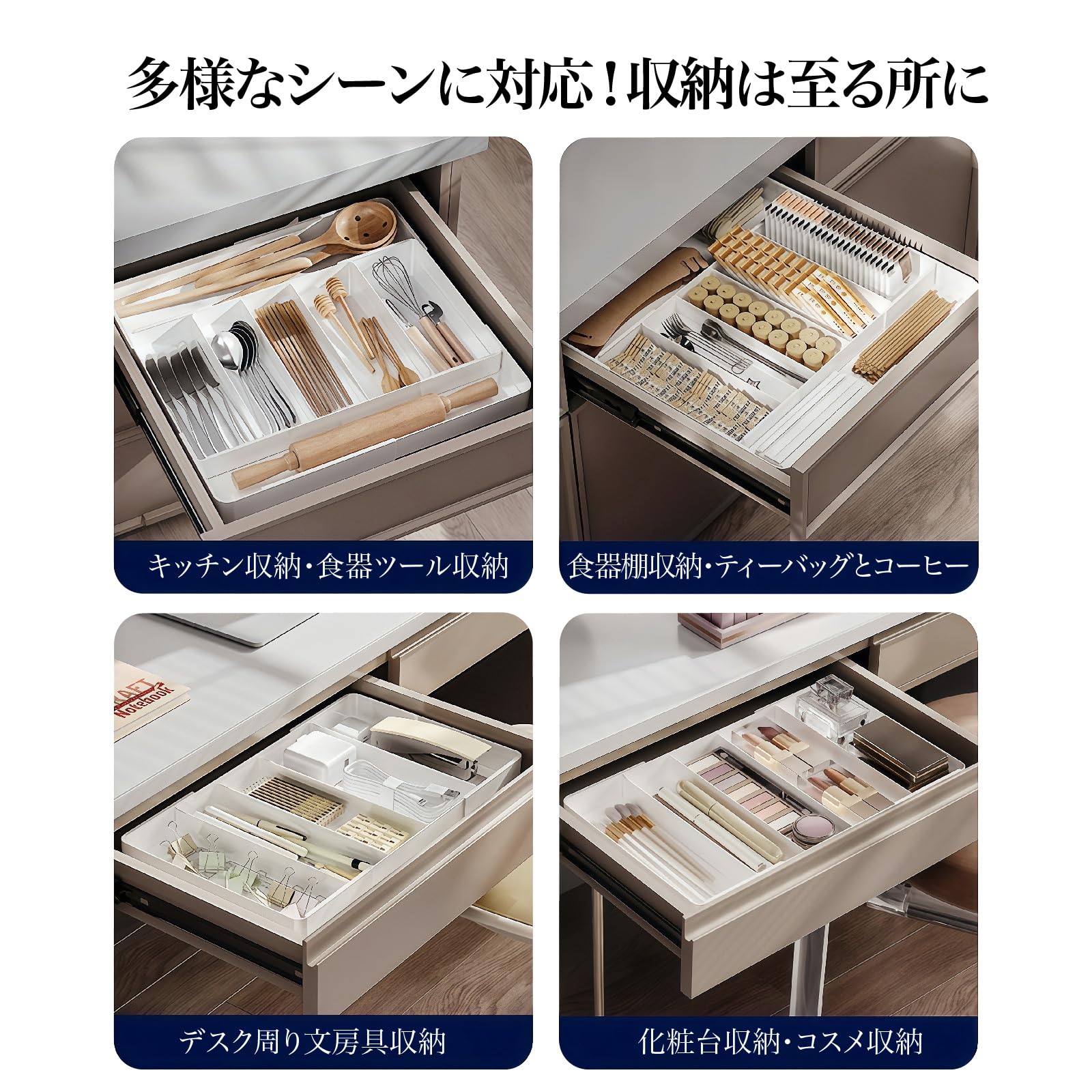 WoRefCra カトラリーケース 4面伸縮 調節可能 引き出し 仕切り カトラリートレー トレー 取外し可能 お手入れ簡単 キッチン収納 カトラリー 収納 小物入れ