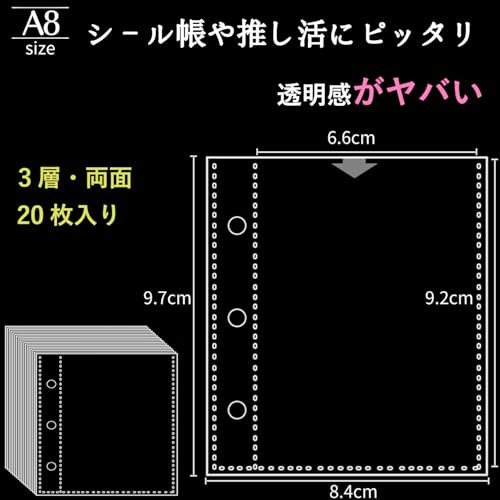 Virtarlux A8 シール帳 台紙 リフィル用 透明 台紙付き 剥離紙付き シール手帳 はがせる 両面ポケット付き (A8リフィル 20枚入)