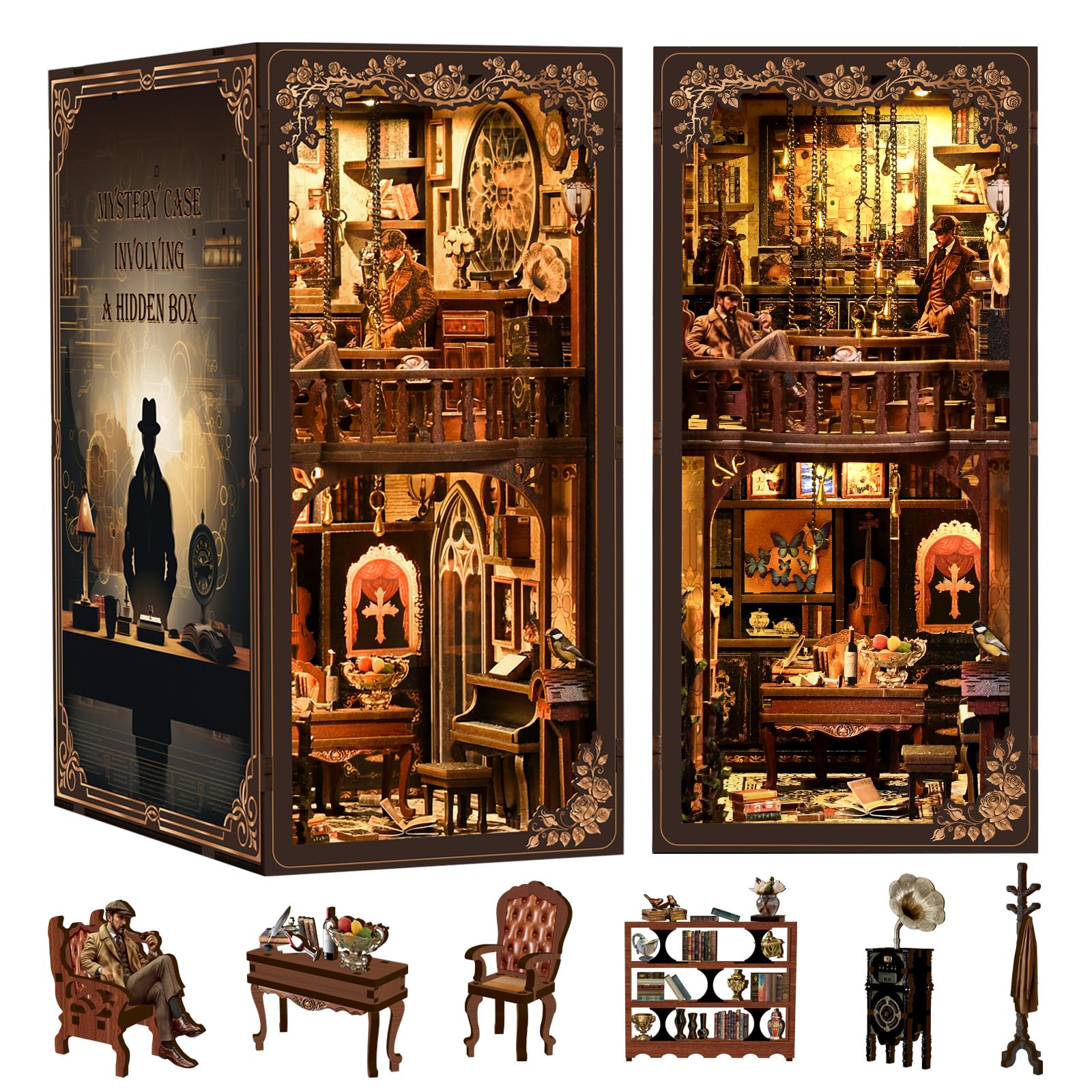 CRESYMME ミニチュアハウス ドールハウス ブックヌック キット 木製 DIY 立体 趣味 手作り (探偵の秘密箱)