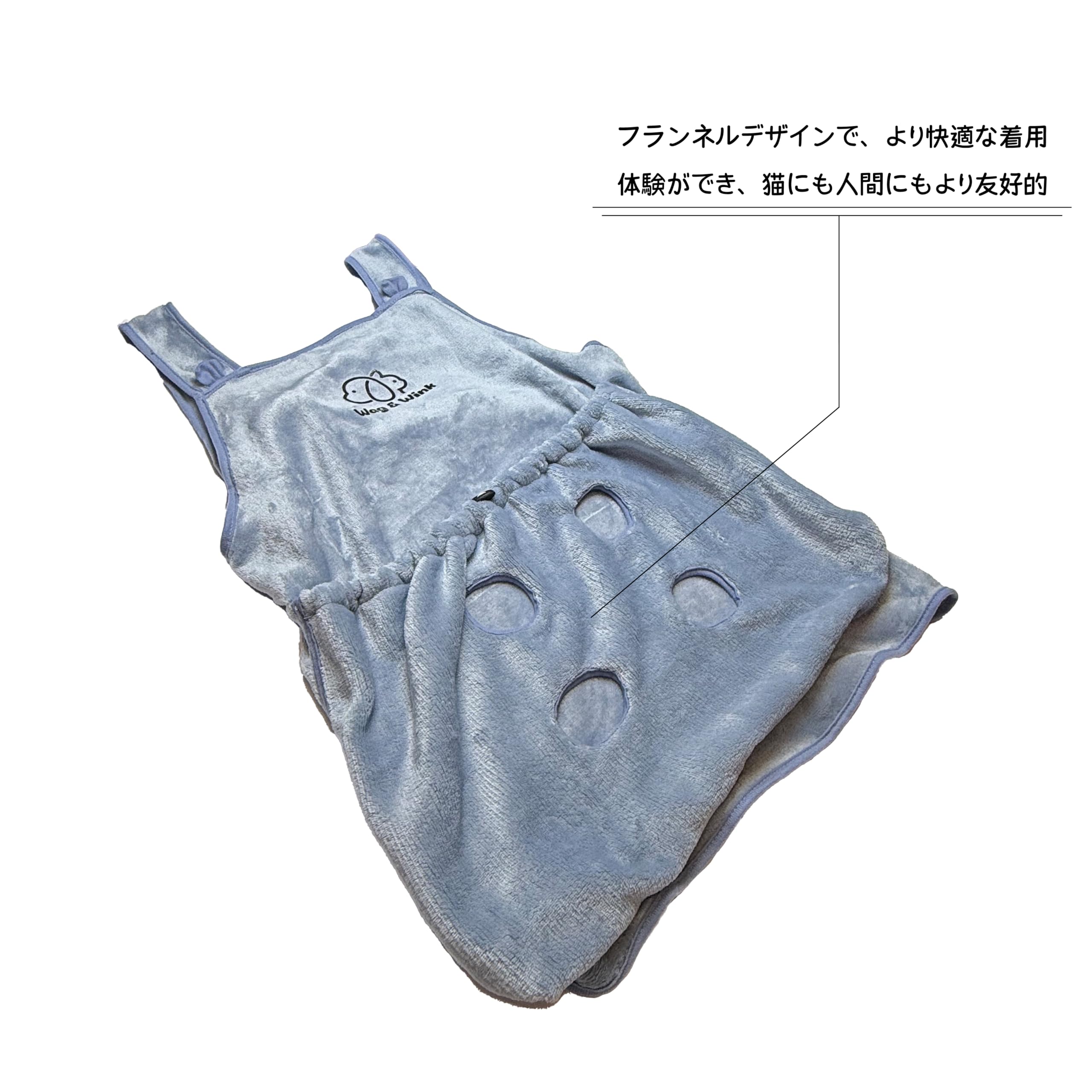 Wag&Wink 猫用 抱っこエプロン(無孔)厚手 寝袋タイプ カンガルーポケット 2025ウィンター トレンドカラー 新進デザイナーオリジナル秋冬 防寒対策 防粘毛カバー 猫を胸に包むエプロン 墨緑/サックスブルー フリーサイズ (ライトブルー)