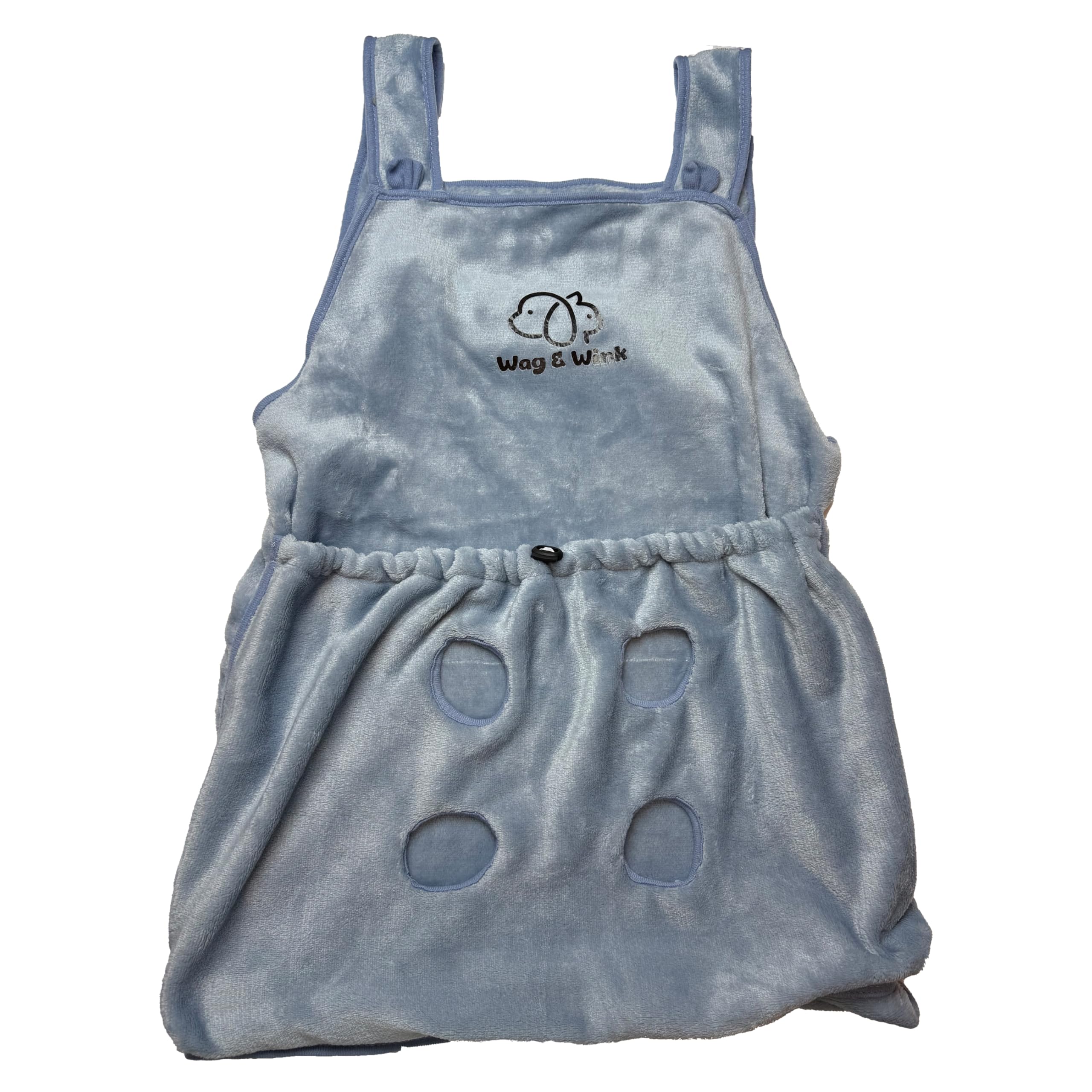 Wag&Wink 猫用 抱っこエプロン(有孔)厚手 寝袋風 カンガルーポケット 2025ウィンター トレンドカラー 新進デザイナーオリジナル秋冬 防寒対策 防粘毛カバー 猫を胸に抱くエプロン 墨緑/サックスブルー フリーサイズ (ライトブルー)