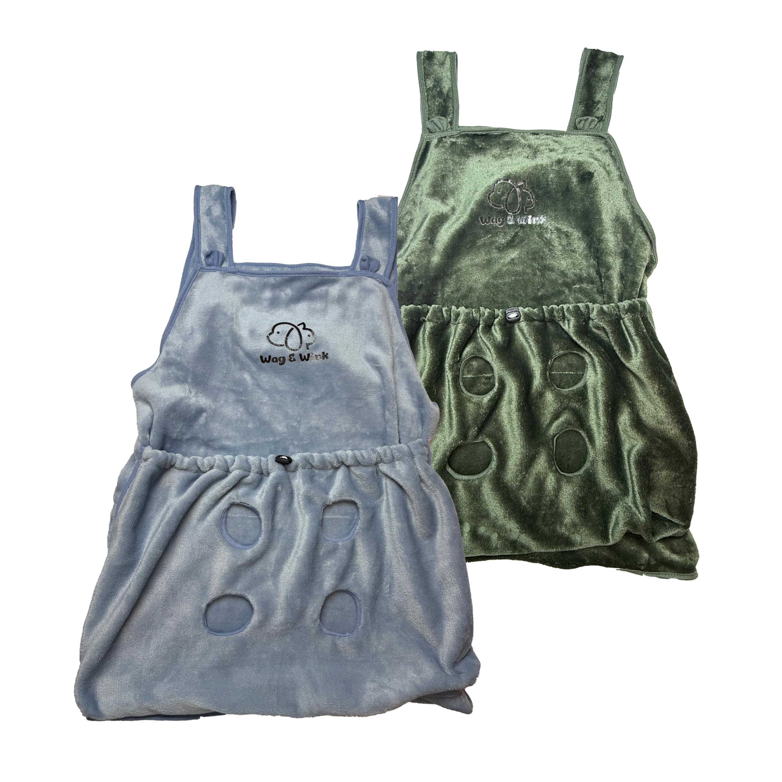 Wag&Wink 猫用 抱っこエプロン(有孔)厚手 寝袋風 カンガルーポケット 秋冬 防寒対策 防粘毛カバー 猫を胸に抱くエプロン 墨緑/サックスブルー フリーサイズ (ダークグリーン)