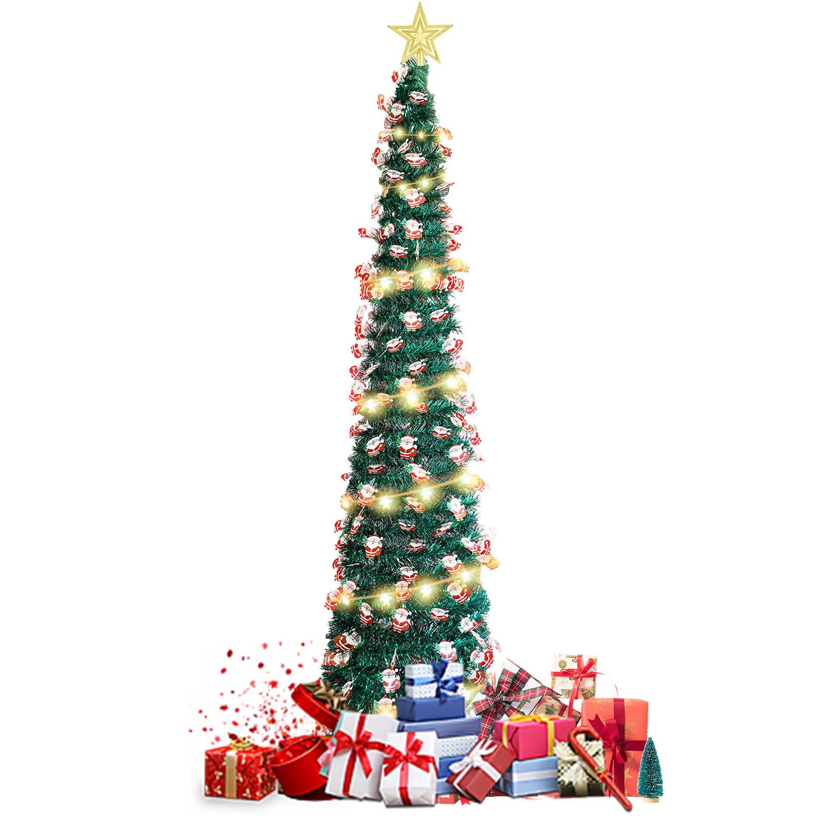 TOWEBOORY クリスマスツリー 150cm ポップアップ式 トップ星&オーナメント付き 折りたためるクリスマスツリー スリム型 5mLED飾りライト Christmas tree 組立簡単 収納便利 クリスマス飾り 屋内 商店 部屋 クリスマスグッズ (サンタクロース版)