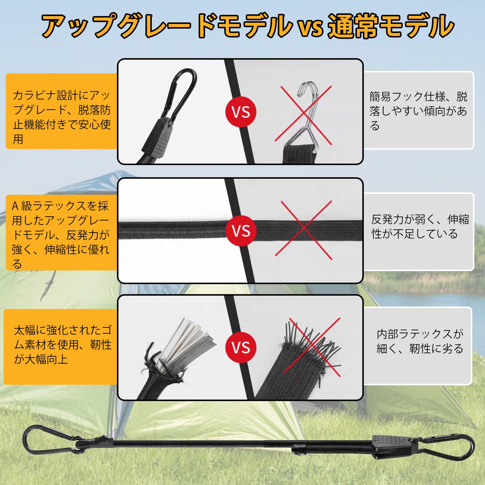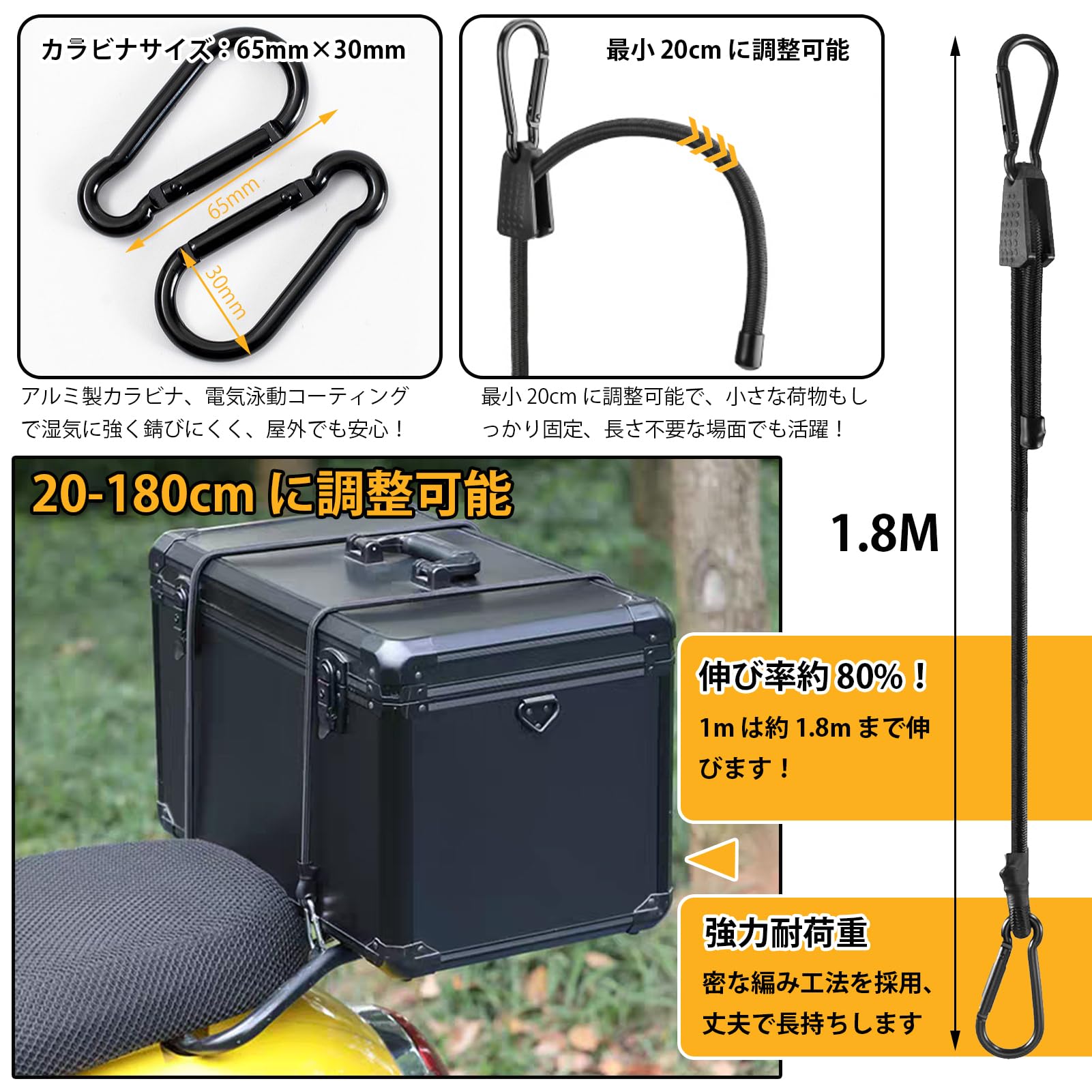 AWELCRAFT 調節式ゴムバンド バンジーコード カラビナフック 20cm~100cm 2本 長さ自由自在 荷締め ゴムロープ 荷台用 荷物固定 荷崩れ防止 自転車 バイク アウトドア キャンプ 1m*2本