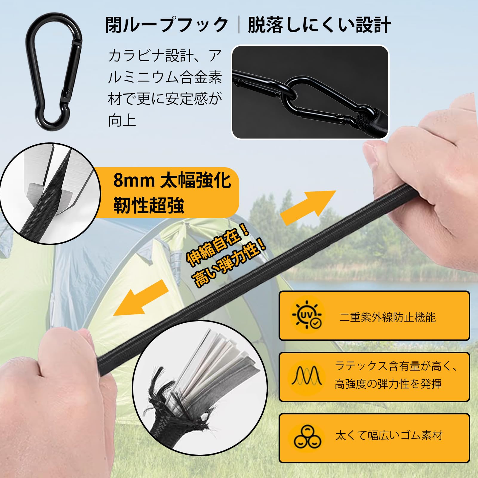 Abma Cord ショックコード バンジーコード 10mm 弾性 ゴムロープ ストレッチコード 荷物固定 ターポリン カーゴネット クラフト DIY用など(10M)