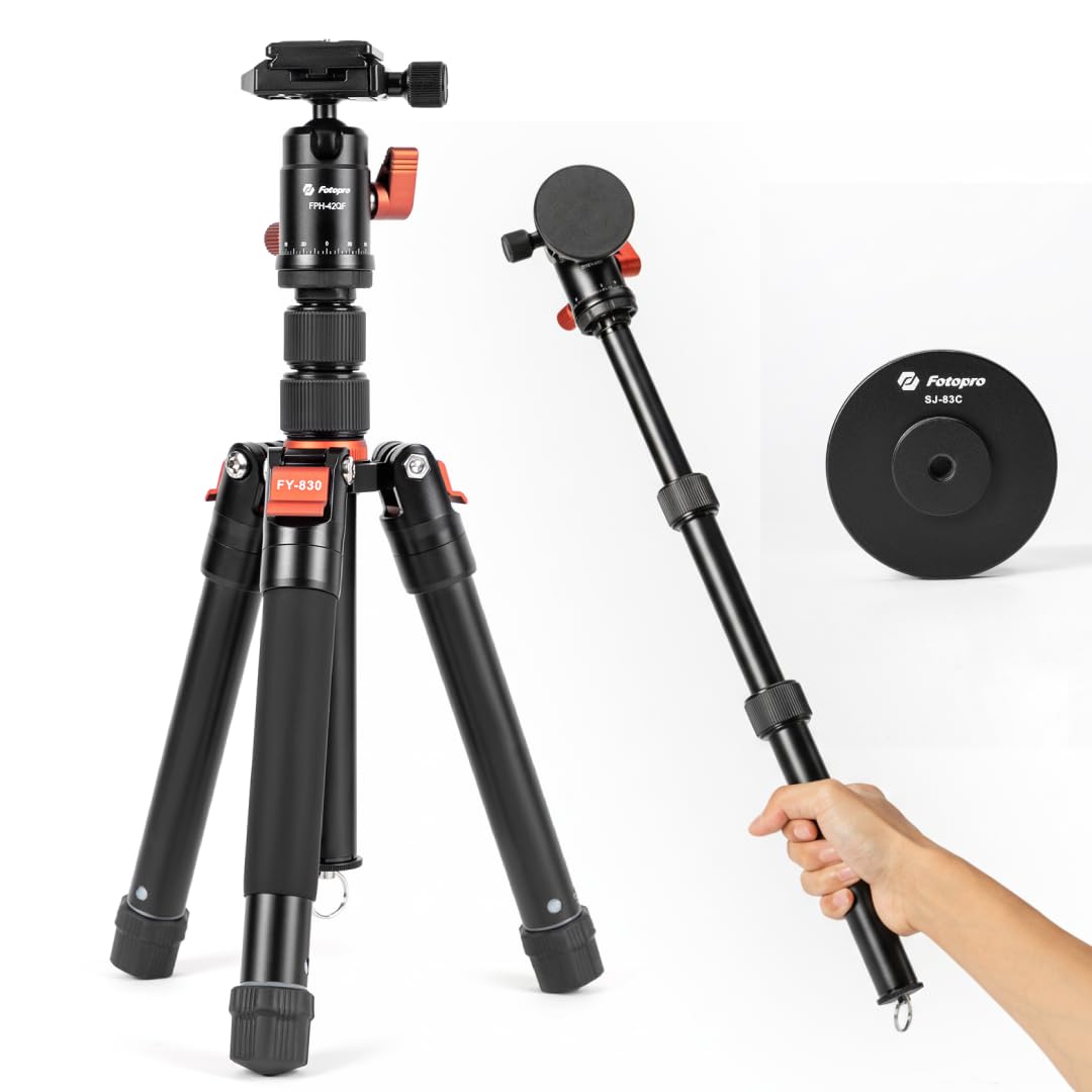 Fotopro ミニ三脚 148cm 軽量コンパクト 旅行用 360度ボールヘッド 着脱式で自撮り棒としても利用可能 スマホマウント付き 耐荷重8kg モデルFY-830 オレンジ