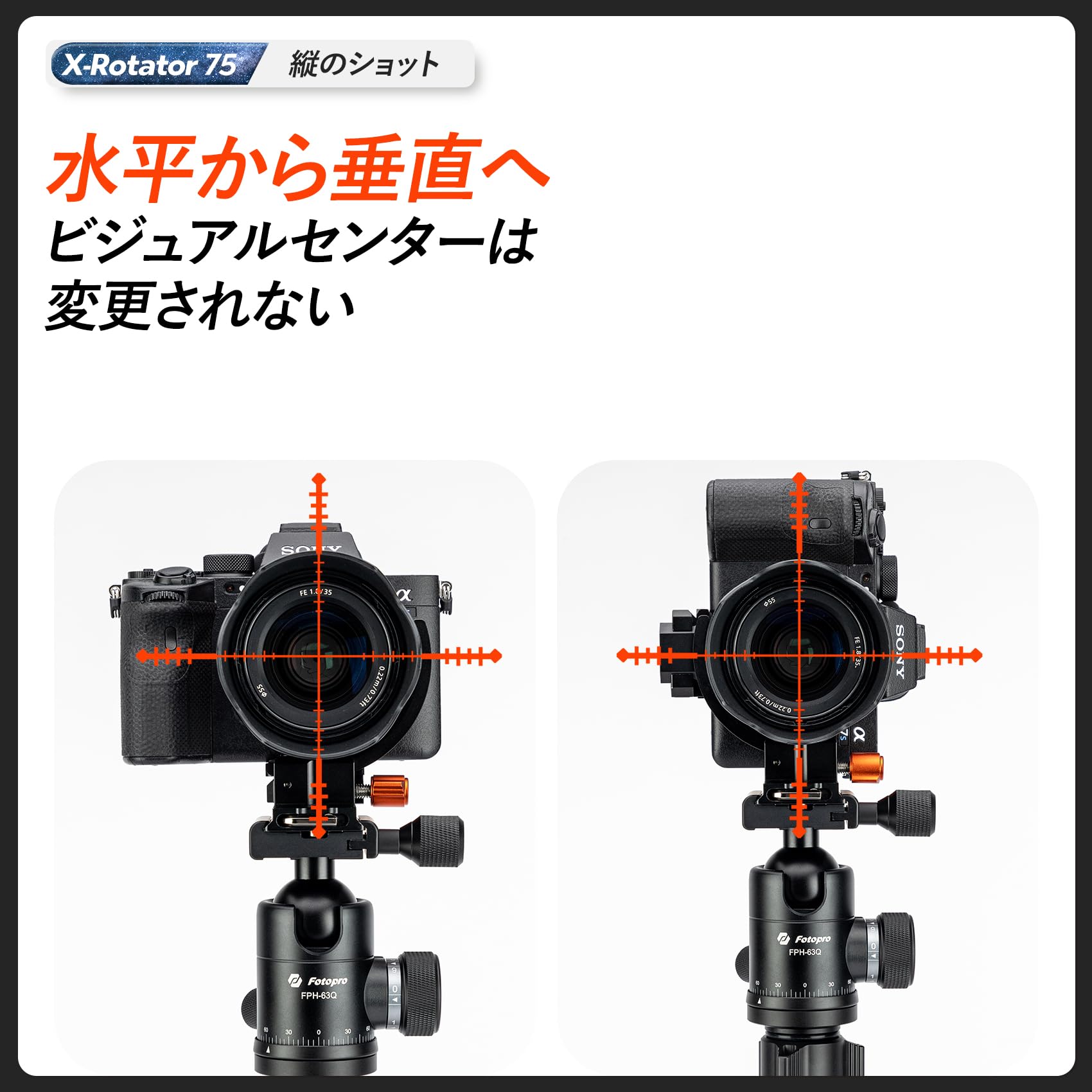 Fotoproカメラ垂直ブラケット三脚マウントリングレンズマウント回転マウントプレートデジタル一眼レフ一眼レフ用フィットプレートアルカタイプ対応64.8mmレンズ水平垂直オレンジ