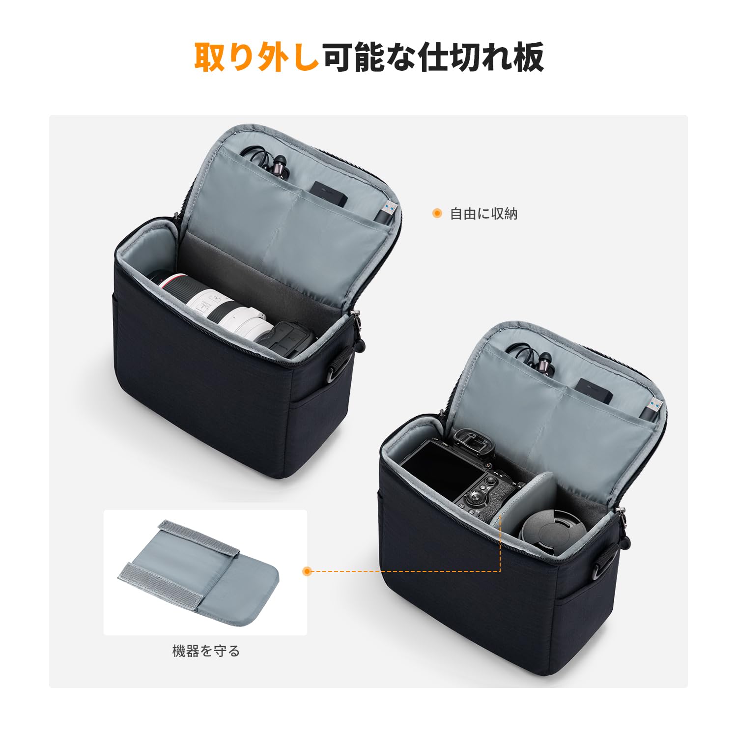 カメラバッグ 一眼レフカメラバッグ 仕切り収納 汎用カメラケース カメラアクセサリー収納用バッグ 旅行 アウトドア撮影用バッグ Canon Fujifilm Nikon Sonyカメラ対応 ブラック