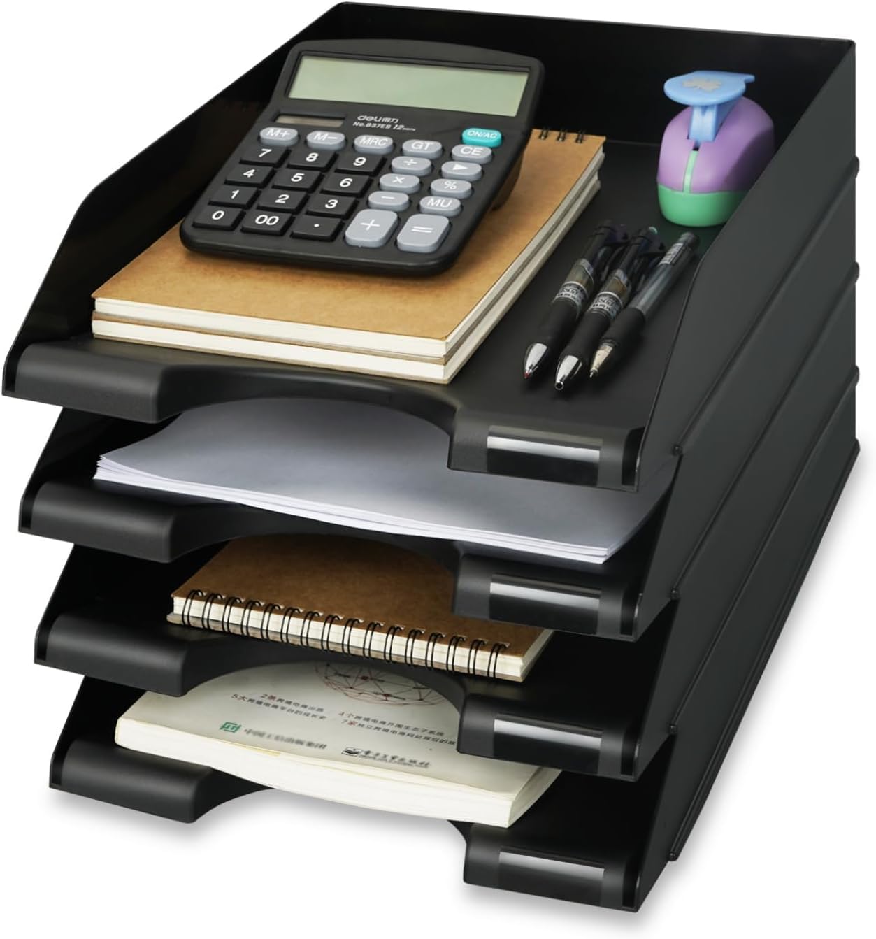 書類トレー a4 レターケース 書類整理トレー 書類収納 4段 縦型 卓上収納 書類ケース文房具収納 書類棚 小物収納 新聞/雑誌/ファイル/フォルダー/入れ 整理整頓 積み重ね可能 (ブラック)