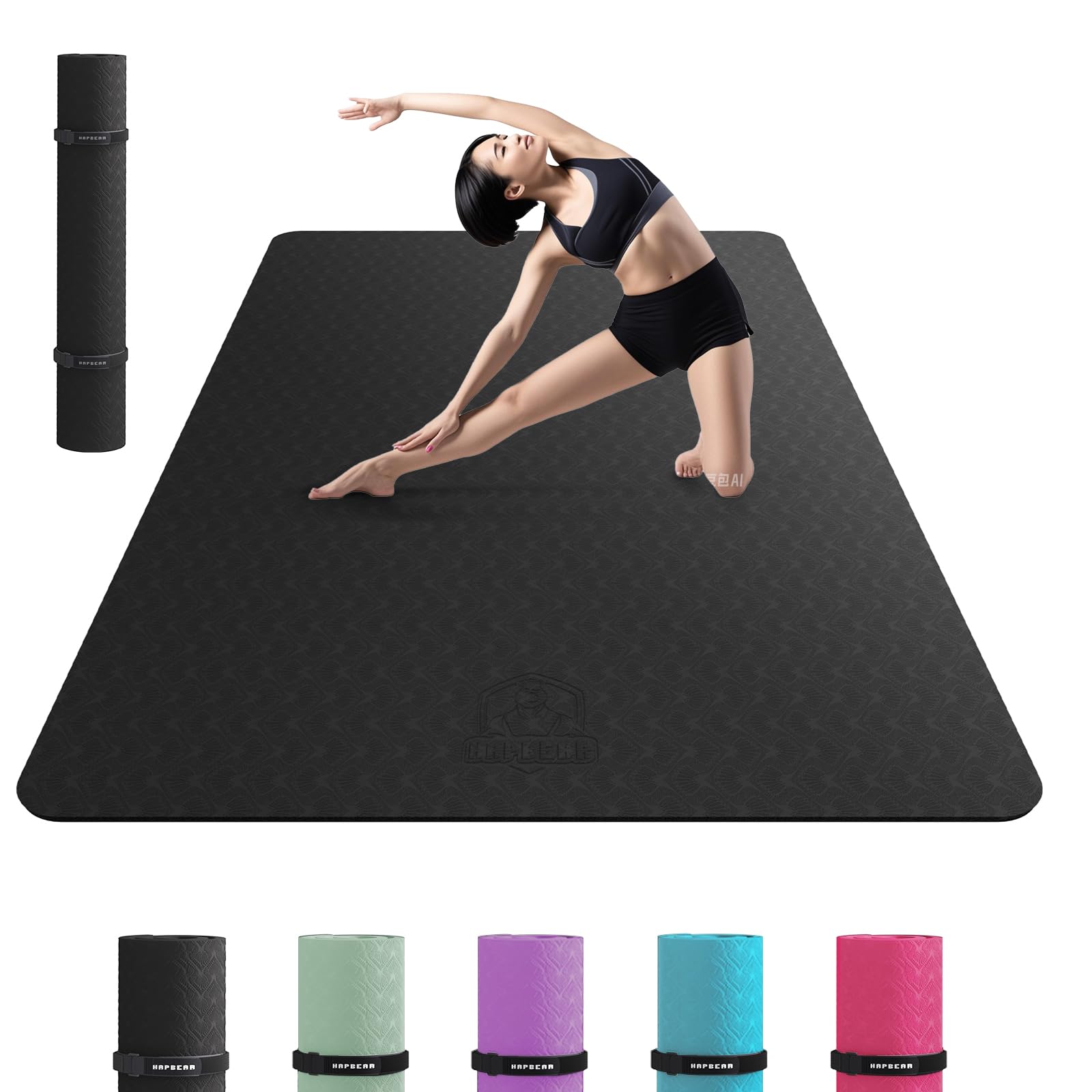HAPBEAR ヨガマット 特大 幅広 トレーニングマット 厚め 6mm ピラティスマット 両面滑り止め 防音マット TPE素材 軽量 フィットネスマット スポーツマット エクササイズ 収納バッグ付き