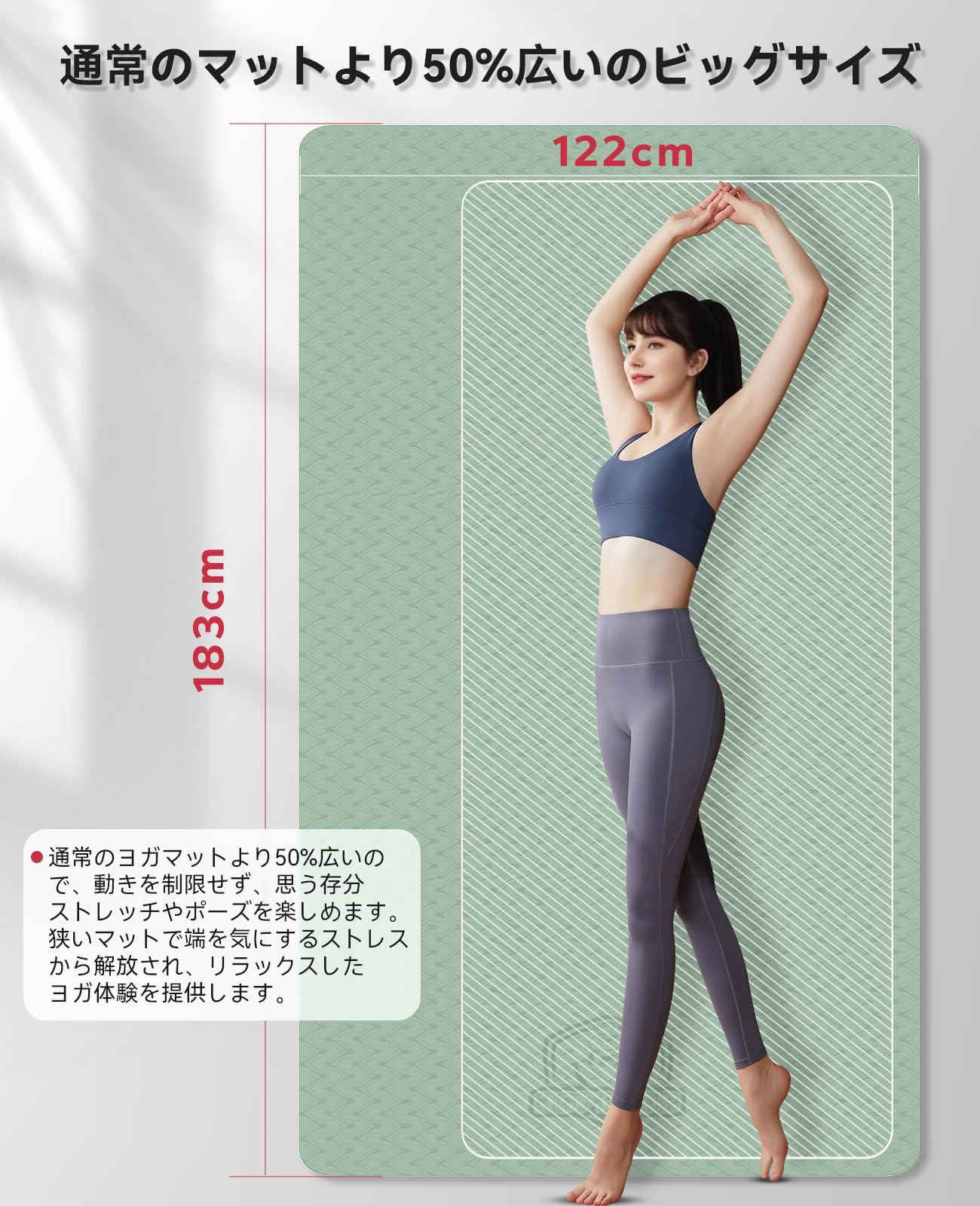 Odoland ヨガマット キャリーストラップ付 183x122cm/200x130cm 極厚6mm 滑り止め トレーニングマット エクササイズマット