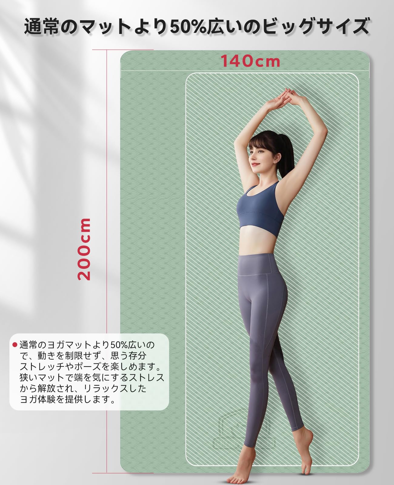 HAPBEAR ヨガマット 特大 両面仕様 エコ スポーツマット TPE フィットネスマット 滑り止め ピラティス トレーニング用 携帯バッグ レジスタンスバンド付き ツーカラー
