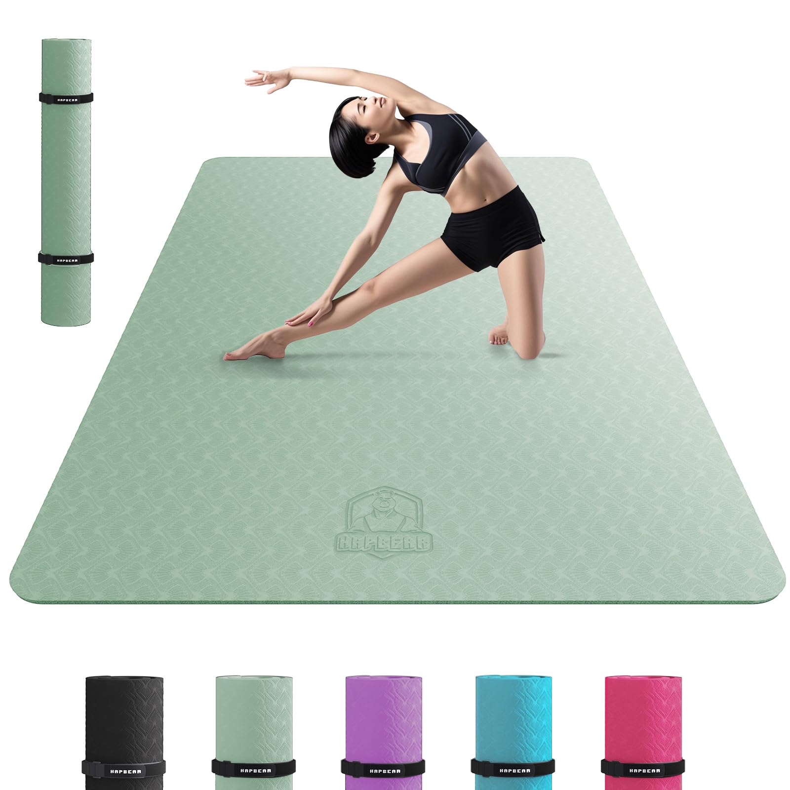 HAPBEAR ヨガマット 特大 幅広 トレーニングマット 厚め 6mm ピラティスマット 両面滑り止め 防音マット TPE素材 軽量 フィットネスマット スポーツマット エクササイズ 収納バッグ付き