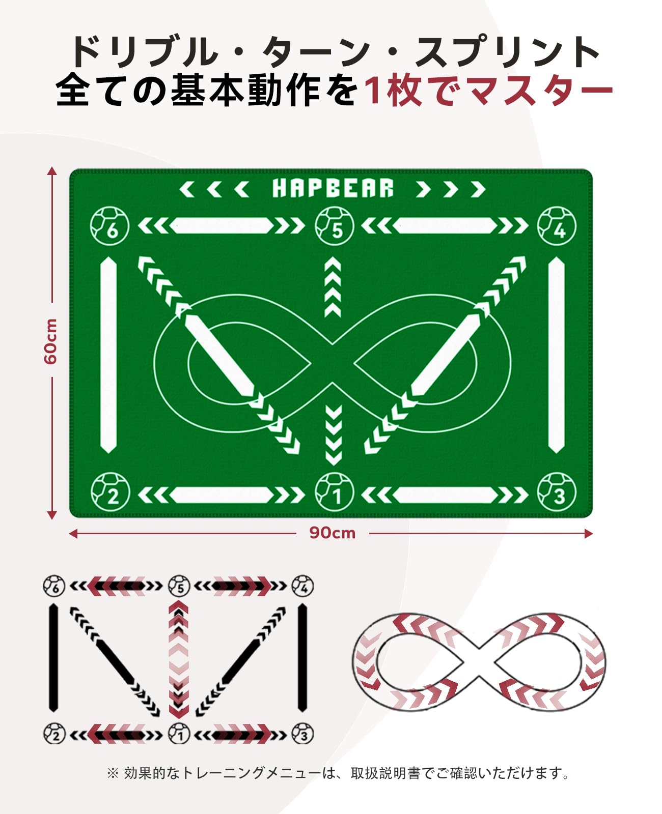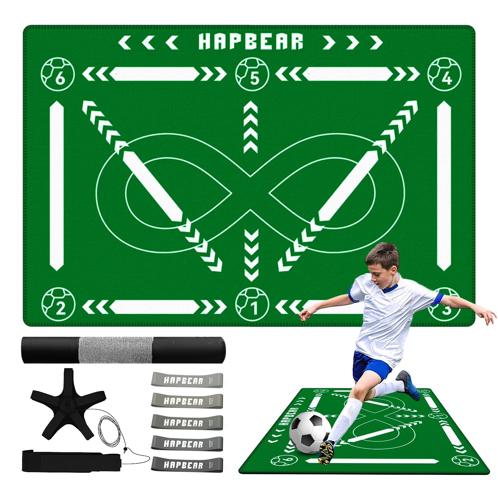 HAPBEAR サッカーマット サッカー練習用マット トレーニングマット サッカー練習用 90x60cm|5cm厚EVA|滑り止め両面設計|子供/大人対応|家庭・ジム兼用|トレーニングバンド&収納袋付き
