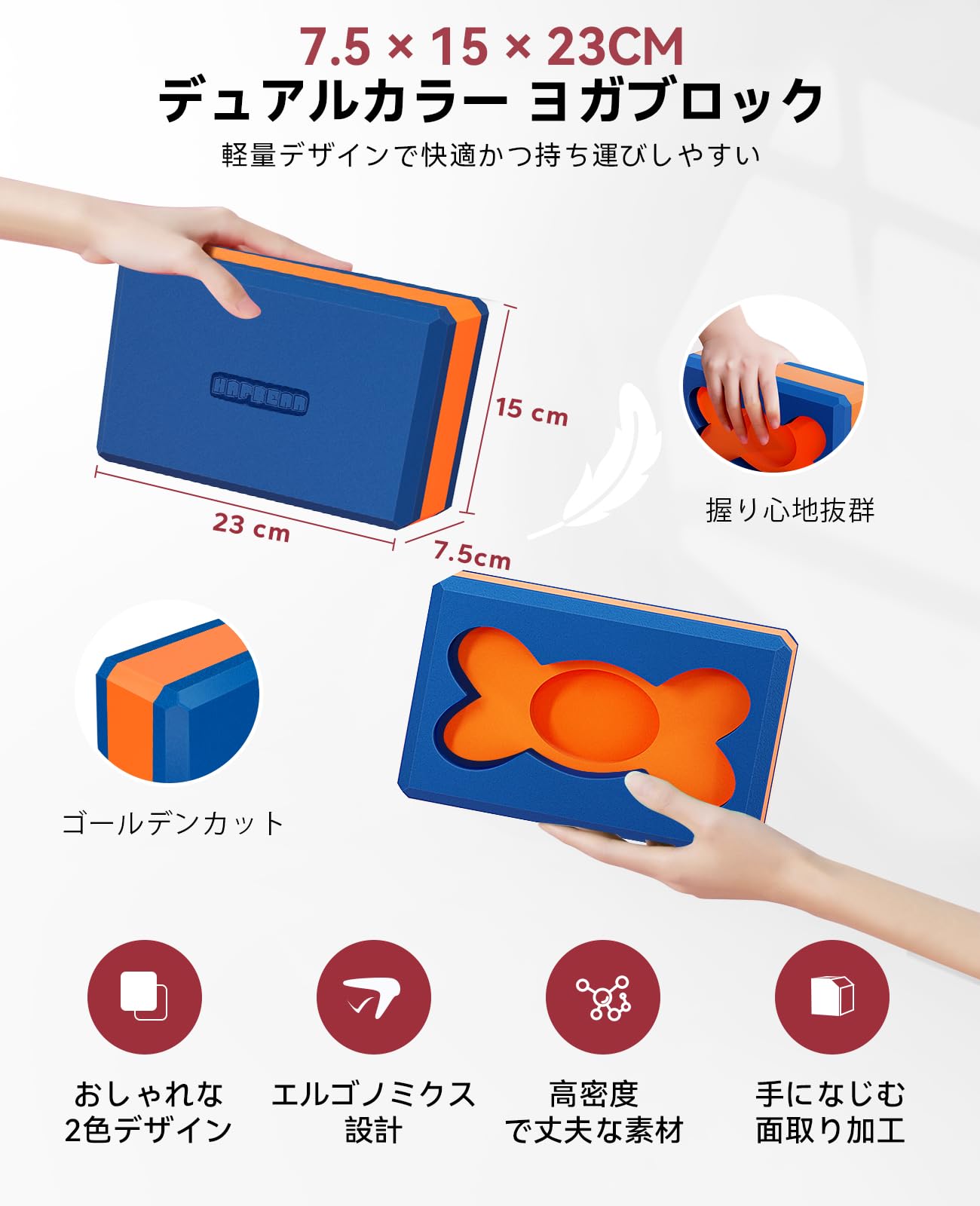 ヨガブロック 2個セット 23x15x10cm 高密度/硬 300gx2 +ヨガストラップヨガベルト調節可能 250cm 滑りにくい