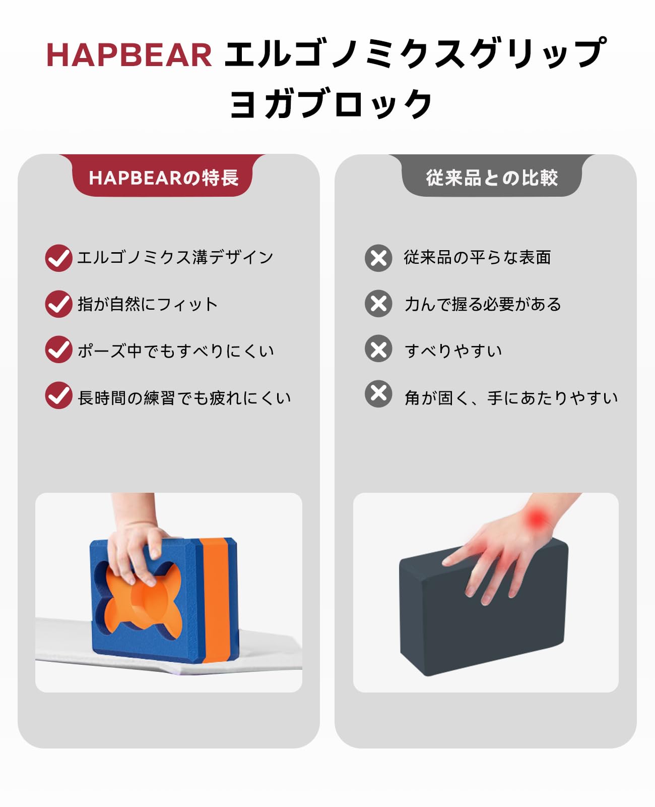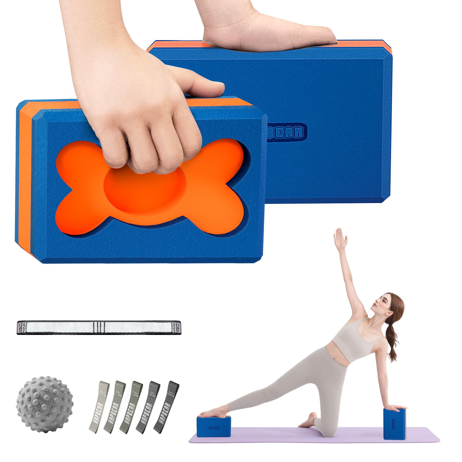 HAPBEAR ヨガブロック ストレッチブロック 2個セット|トレーニングチューブ5本 & マッサージボール付き|ゴールデンカット設計・滑り止め溝|軽量多機能(自宅/ジム/屋外)