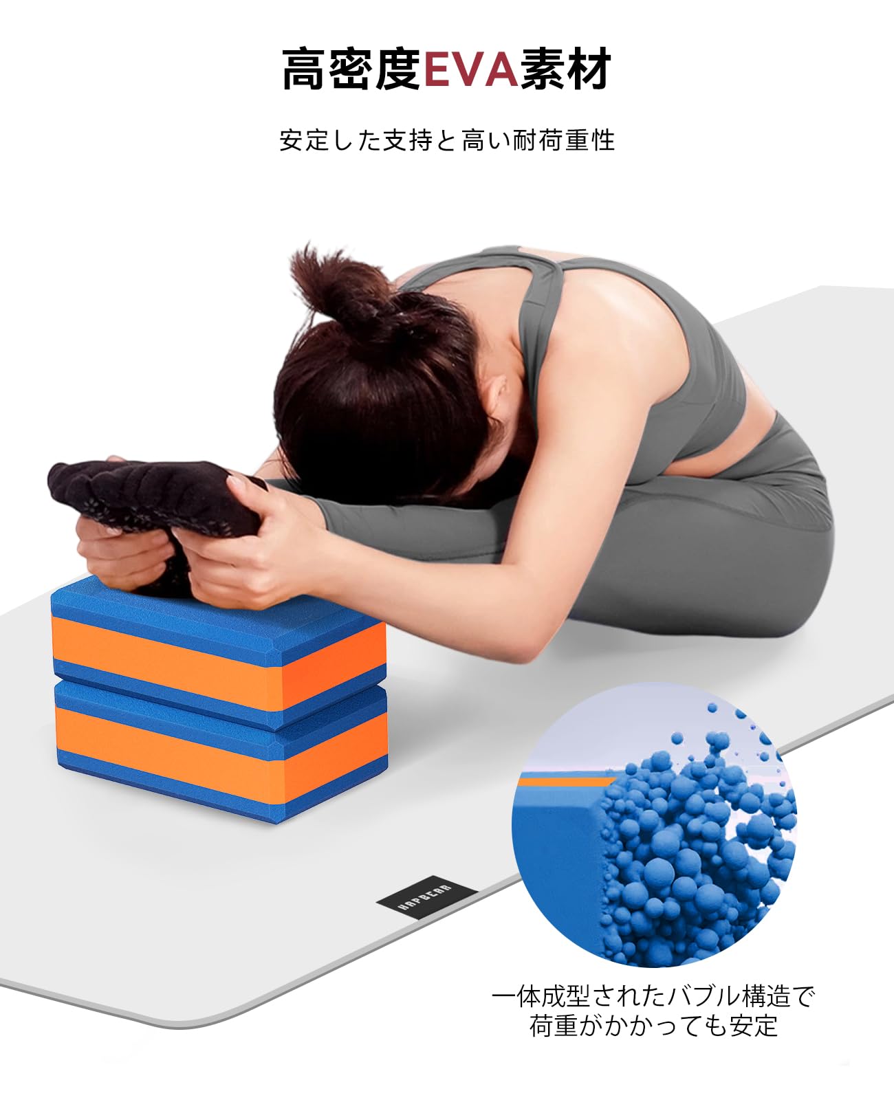 【Tumaz】ヨガブロックヨガベルト ポーズ補助用3点セット(高密度EVA軽量ヨガブロック または 高防滑性コルクヨガブロック) セット内容:ヨガブロックX2/ヨガベルトX1/デジタルガイドX8) あらゆるカラー 防滑性 安定性 軽量 お持ち運び便利 ストレッチ用 ピラティスブロック 【日本直営店】